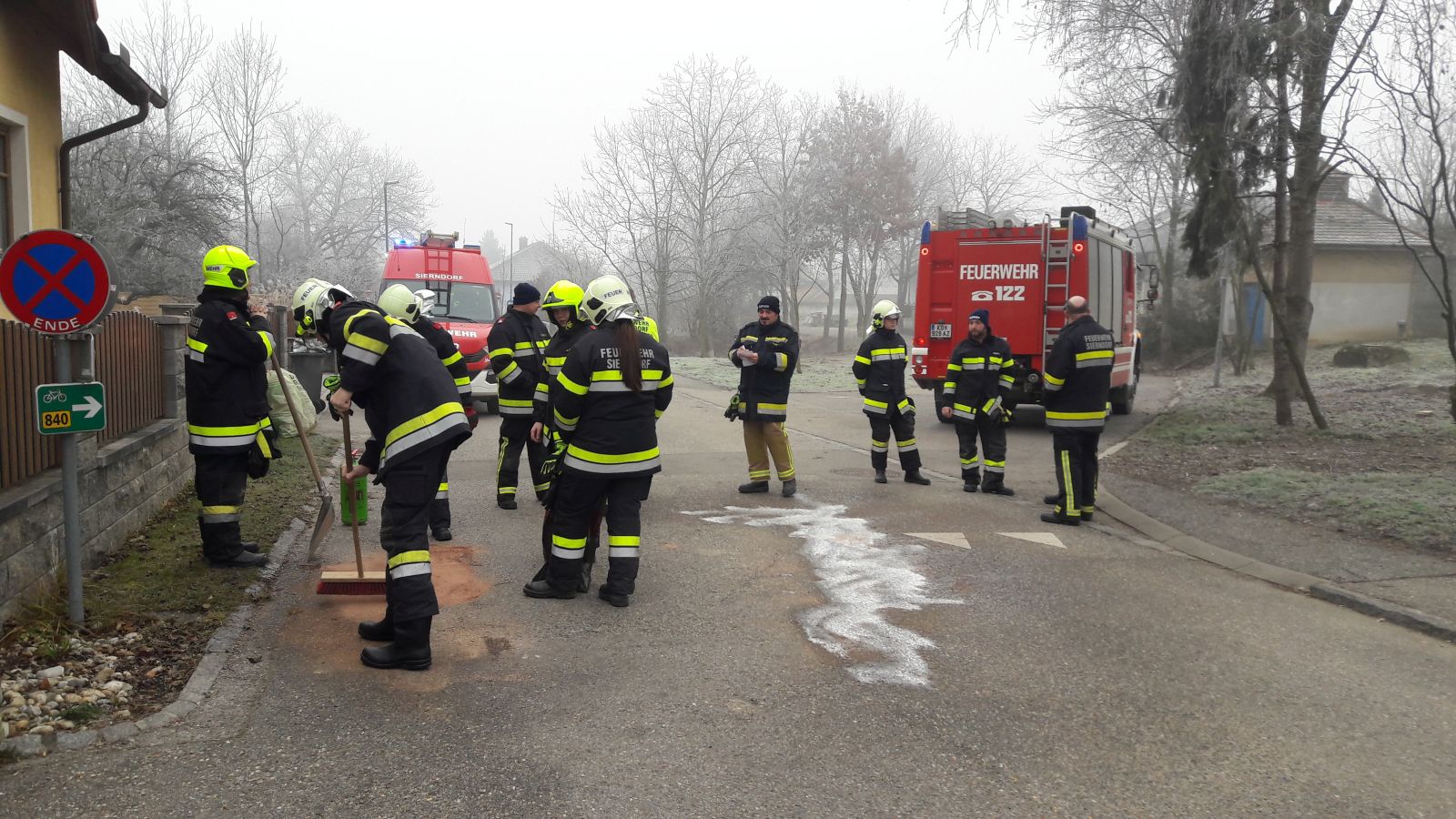 Das Hydrauliköl wurde mit Ölbindemittel gebunden und anschließend noch mit Bioversal fachgerecht entfernt. Danach wurde die Straße mit Wasser gereinigt und da Temperaturen unter 0° herrschten wurde von Mitarbeitern der Gemeinde Salz gestreut um eine Eisbildung zu verhindern.