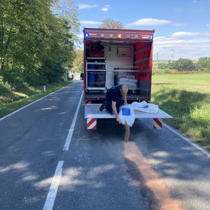 Durch einen technischen Defekt verlor in Traktor auf der L31 im Bereich des Bahnüberganges beim Lagerhaus Betriebsmittel. Mittels mehrerer Säcke Ölbindemittel wurden diese gebunden. Nach Beendigung unserer Arbeiten wurde die Einsatzstelle and die Straßenmeisterei übergeben.