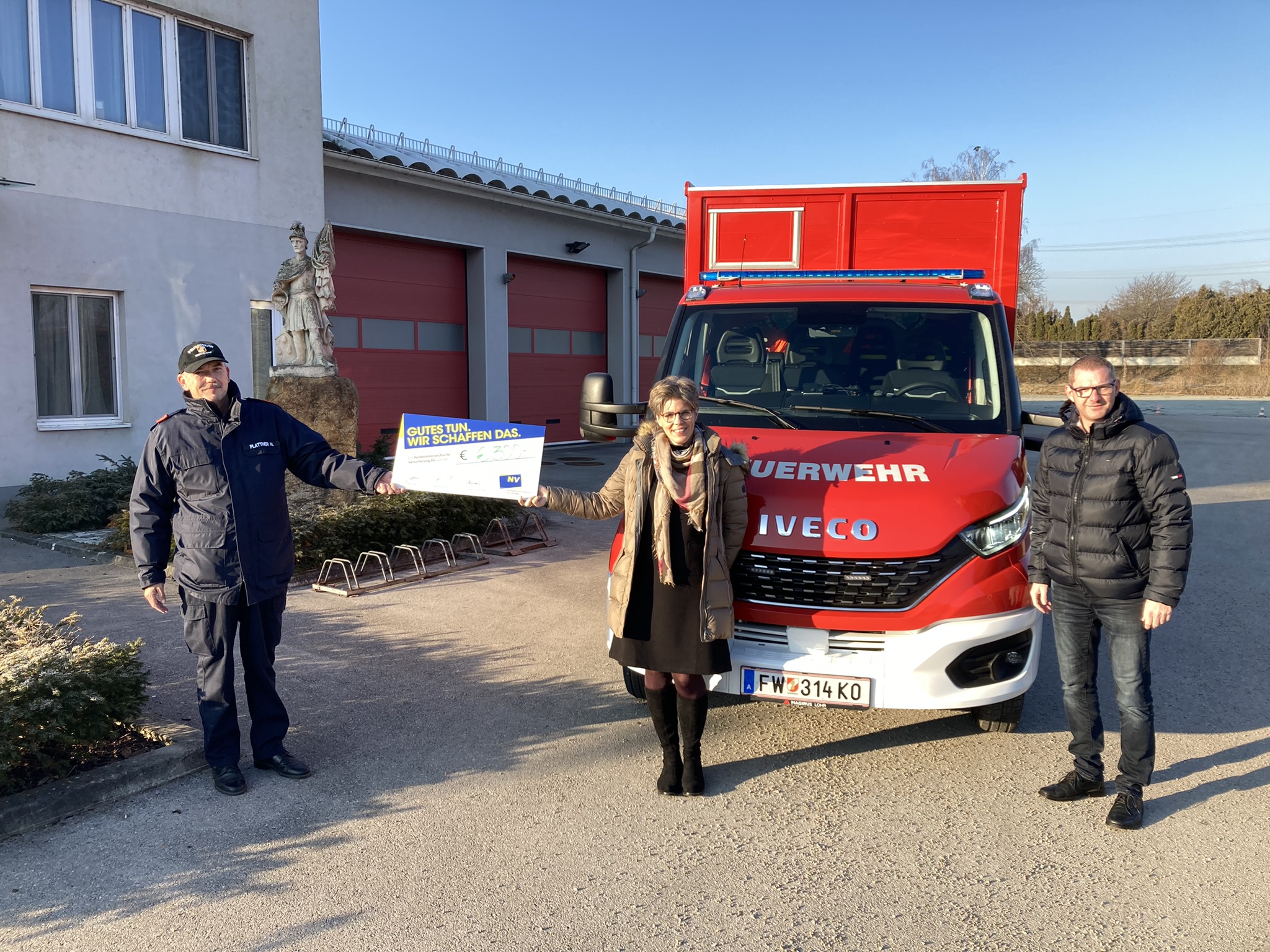 Unsere Betreuerin von der Niederösterreich Versicherung, Alexandra Weinhappel, überreichte uns einen Scheck für unser neues Versorgungsfahrzeug.