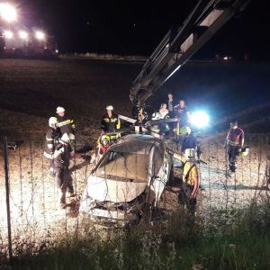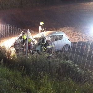 Am Einsatzort eingetroffen fanden wir einen PKW vor, der aus unbekannter Ursache von der Fahrbahn abgekommen und über eine hohe Böschung in ein angrenzendes Feld geschschlittert war. Eine Person befand sich noch im Fahrzeug, sie wurde aber bereits von der Rettung versorgt.
