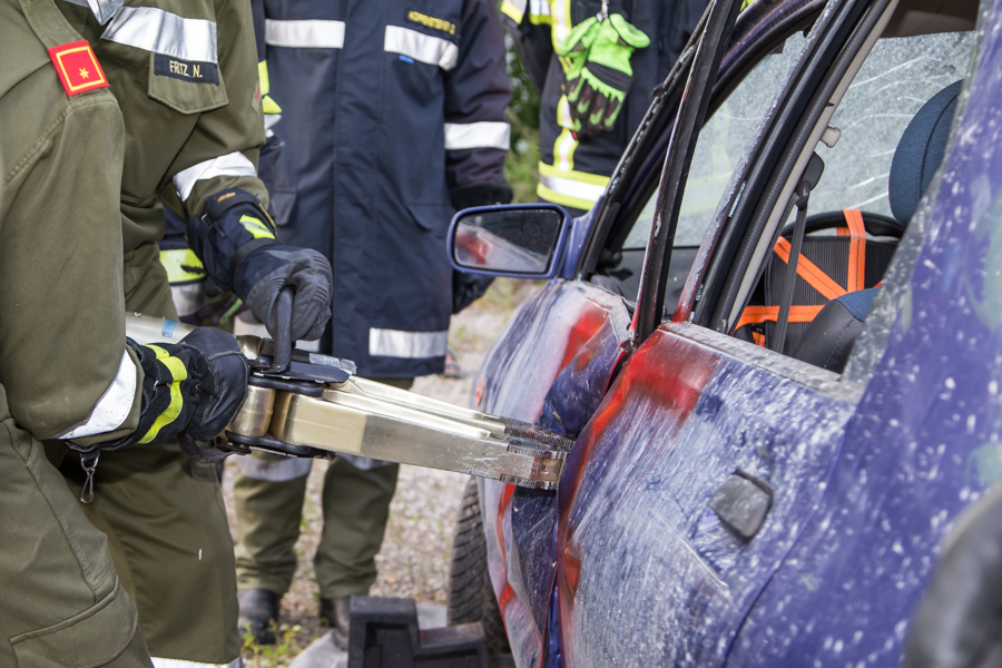 Nach einer Einführung in die Ausrüstungsgegenstände des VRF und einer gemeinsamen Diskussion über die Erstmaßnahmen bei Verkehrsunfällen mit eingeklemmten Personen begannen wir mit dem praktischen Teil der Schulung.