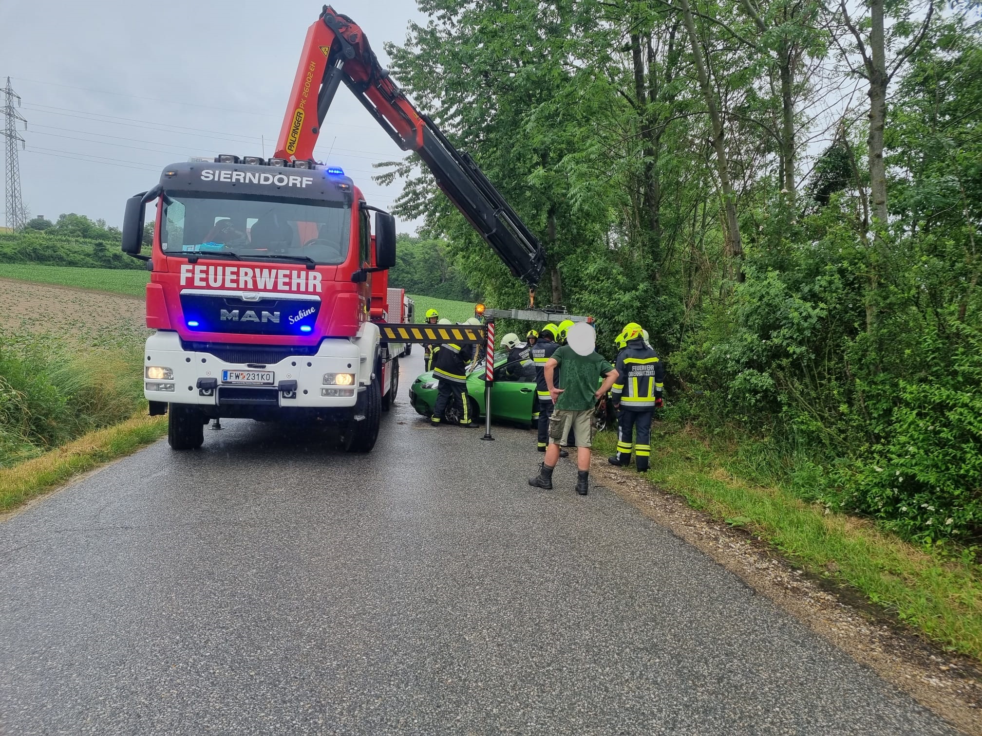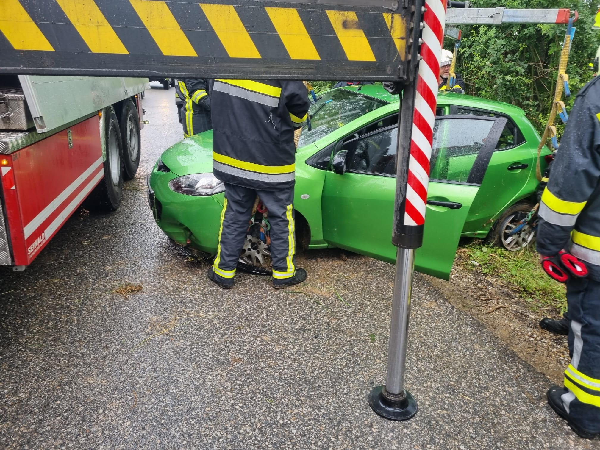 Auf der L1132 zwischen Oberhautzental und Unterparschenbrunn kam ein PKW aus unbekannter Ursache ins Schleudern und kam beschädigt im Strassengraben zu stehen . Nach dem Eintreffen der örtlich zuständigen FF Oberhautzental entschied der Einsatzleiter die FF Sierndorf für die Bergung und Abtransport zu zu alarmieren.