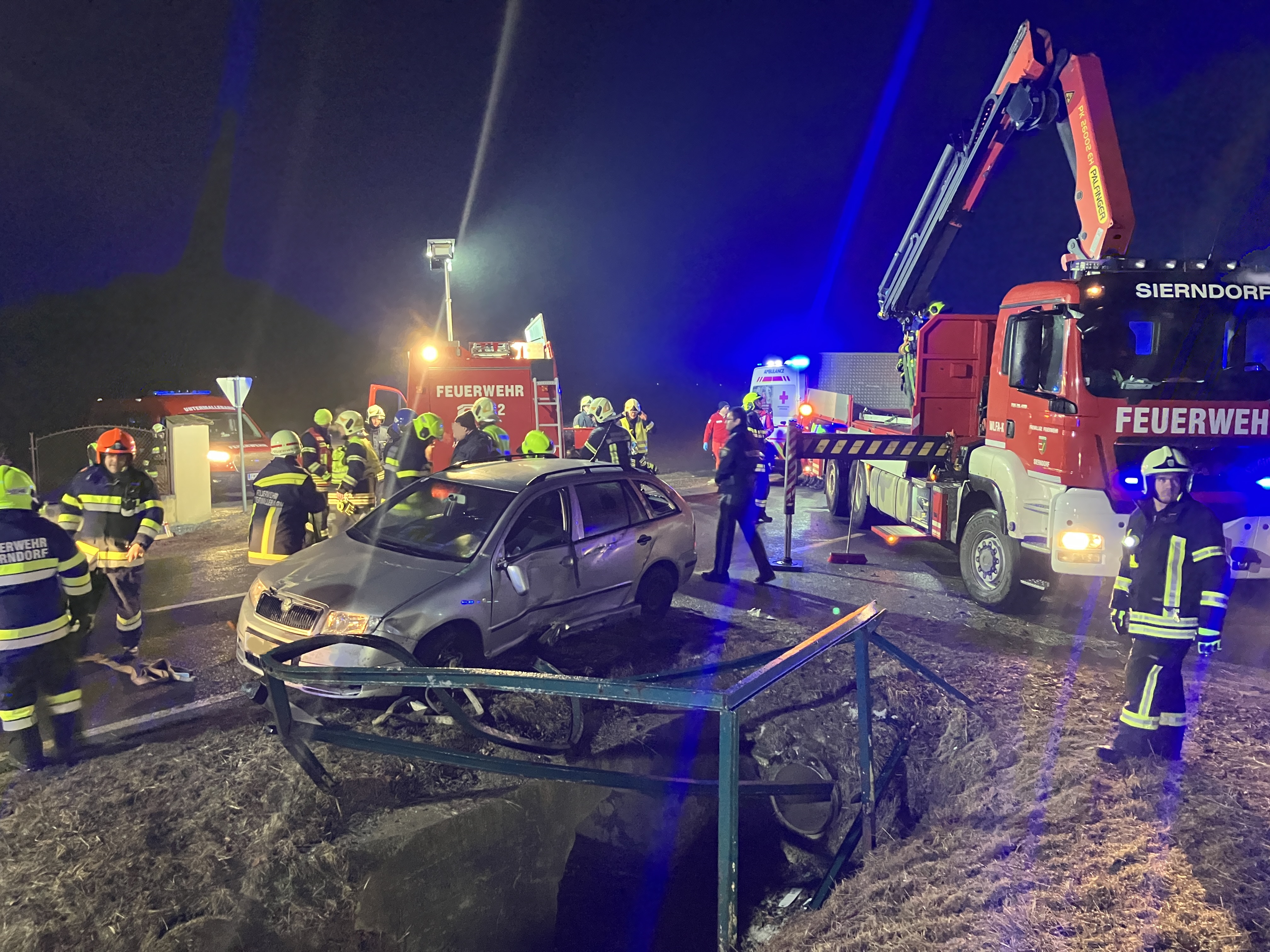 Ein PKW war in den Graben gerutscht, bei Eintreffen des VRF Sierndorf war die Unfallstelle bereits vom ASFINAG Streckendienst abgesichert und ein Abschleppunternehmen begann den PKW zu verladen. Somit waren keine Tätigkeiten unsererseits erforderlich