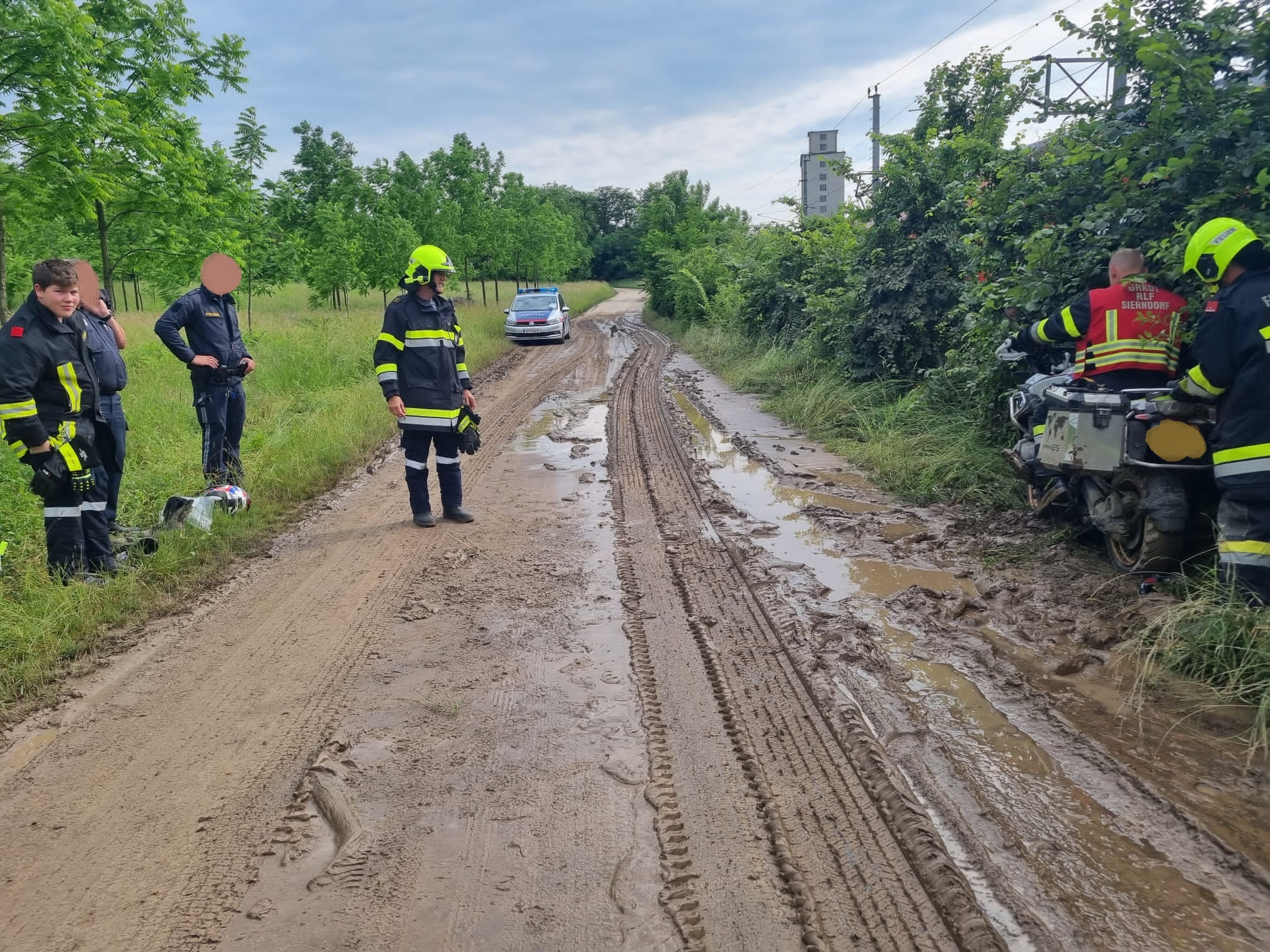 Freitag Nachmittag wurden wir zur Bergung eines Motorrads im Ortsgebiet alarmiert. Aufgrund der nach den starken Regenfällen verschlammten Straße, kam ein Motorradfahrer zu Sturz und verletzte sich am Bein.