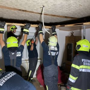 In der Nacht von Samstag auf Sonntag löste sich in einem Wohnhaus im Wohnzimmer die Verkleidung der Decke und drohte abzustürzen. Da vom Hausbesitzer das genaue Schadensausmaß bzw. die Ursache nicht ersichtlich war, wurden wir um ca. 1:40 Uhr zu einer technischen Hilfeleistung gerufen.