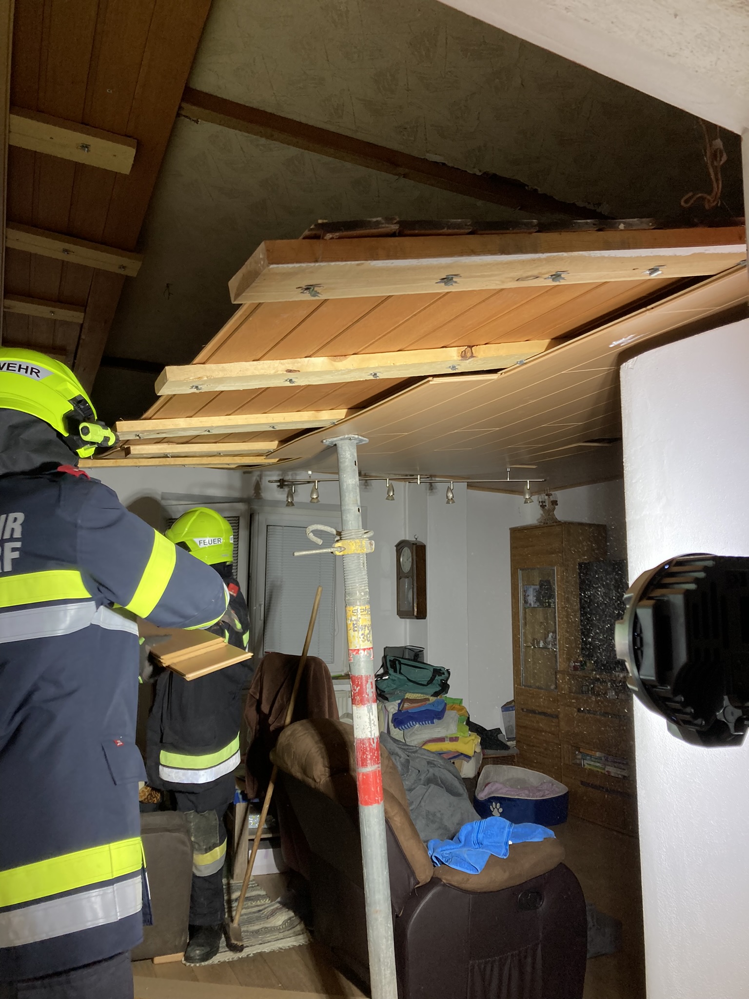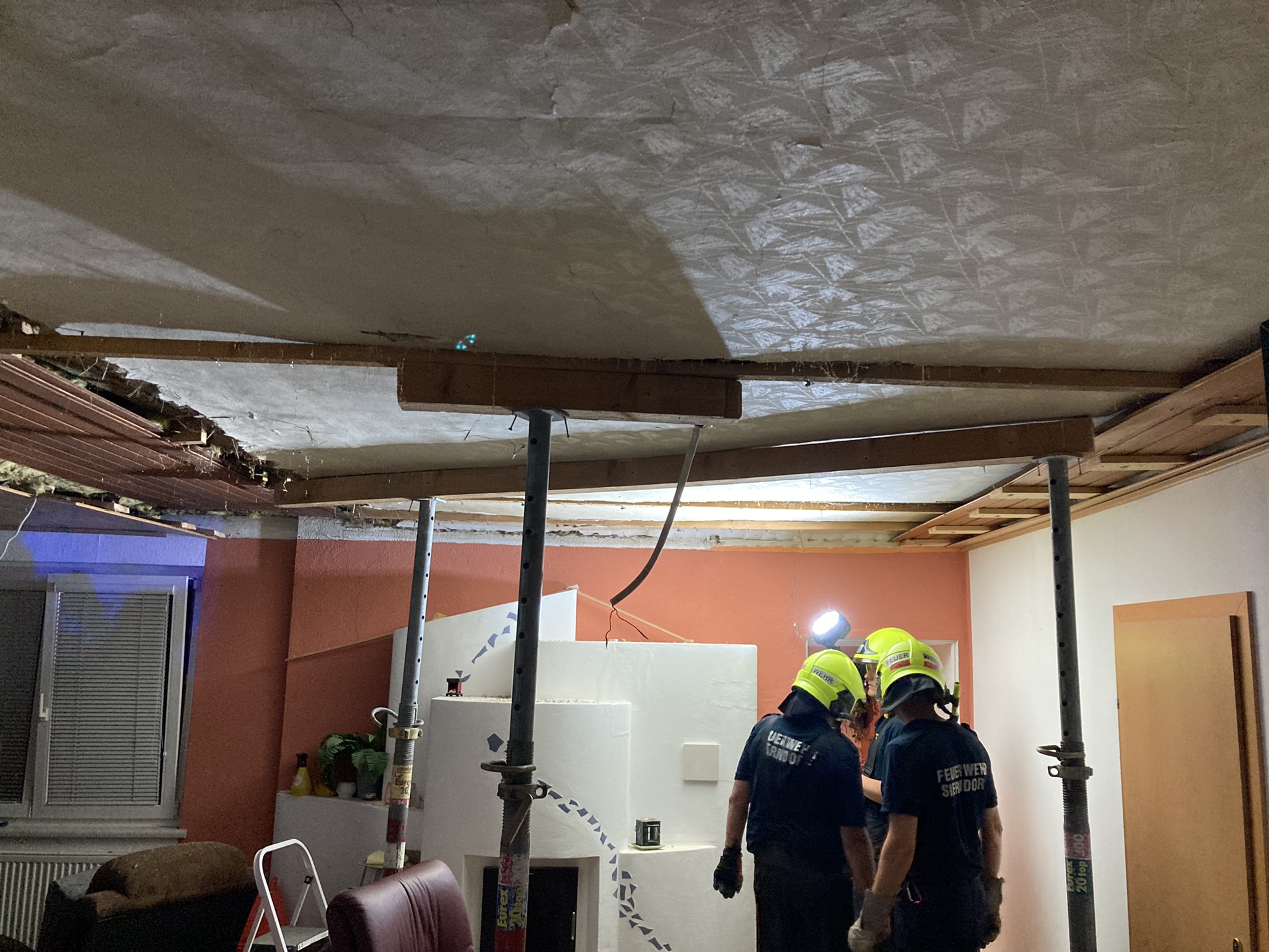Als Sicherheitsmaßnahme wurde die gesamte Decke noch gestützt bevor wir nach ca. 2h wieder einrücken konnten.