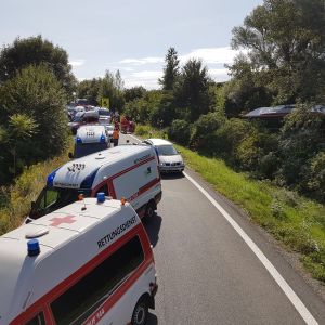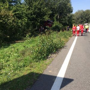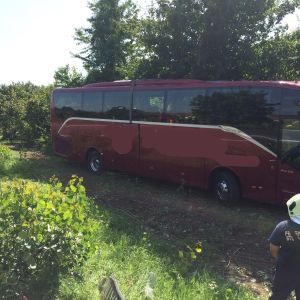 Vor Ort stellte sich folgende Lage dar: Ein Autobus mit 24 Insassen kam von der Fahrbahn ab und schlitterte in den Strassengraben, wo er von Sträuchern und kleineren Bäumen gebremst wurde. Zum Glück kippte der Bus nicht um sondern kam lediglich schräg zum Stillstand.