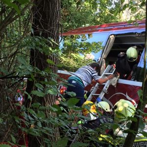 Gemeinsam mit dem Kräften des Roten Kreuzes und den Kameraden der anderen Feuerwehren wurden die Passagiere über ein Fenster und eine Leiter ins Freie gebracht, wo sie vom Roten Kreuz versorgt wurden. Die Fahrerin des Busses wurde beim Aufprall eingeklemmt und wurde nach der Erstversorgung im Bus über das Fahrerfenster gerettet. Sie wurde mit dem Notarzthubschrauber in ein Krankenhaus geflogen.
