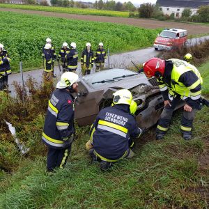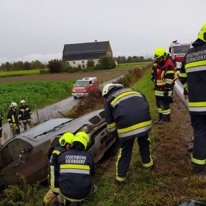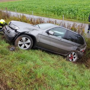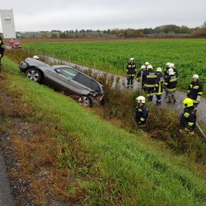 Auf der Richtungsfahrbahn Hollabrunn zwischen Stockerau und Sierndorf hatte ein PKW einen Unfall und kam schwer beschädigt auf der Böschung zum Straßengraben zum Stillstand.