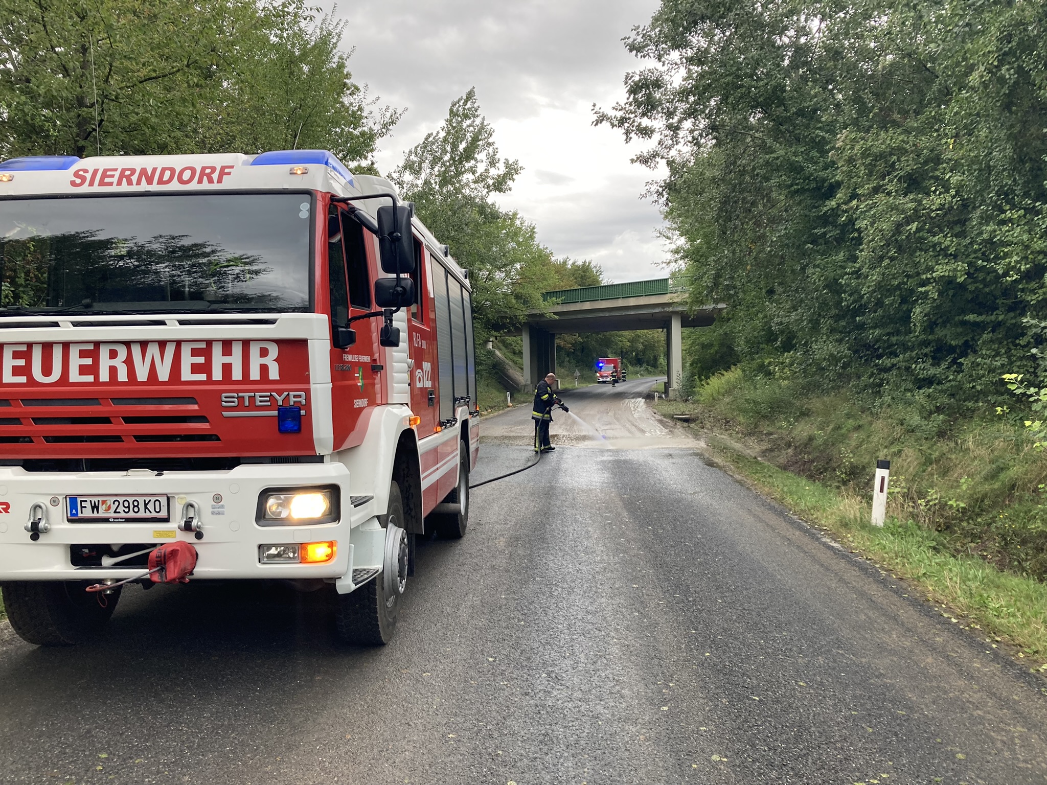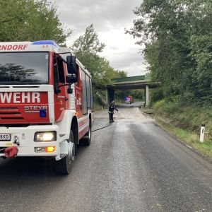 Auf der L31 Richtung Oberolberndorf wurde ebenfalls Schlamm von den Feldern auf die Landesstrasse geschwemmt. Mit dem Nieder- und Hochdruckrohr des RLFA-2000 wurde der Schlamm von der Straße gewaschen.