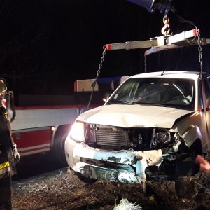 Nachdem die Unfallstelle abgesichert war, wurde das Fahrzeug mit dem WLFA-Kran beborgen und anschließend gesichert abgestellt.