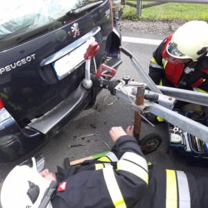 Der silberne PKW wurde mittels Abschleppplateau des WLFA-K abtransportiert, beim zweiten PKW mussten wir zuerst die Anhängekupplung demontieren um anschließend den Wohnwagen mit dem MTF von der S3 ziehen zu können. Das Wohnwagen-Zugfahrzeug konnte die Fahrt fortsetzen.