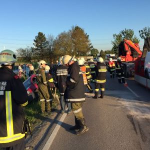 Gemeinsam mit der Freiwilligen Feuerwehr Oberolberndorf wurden wir alamiert um die Unfallwagen zu bergen. Nachdem die Unfallstelle abgesichert war wurde ein PKW mit dem Kran verladen und mit dem WLFA-Kran abtransportiert. Der zweite PKW konnte mittels Abschleppachse entfernt werden.