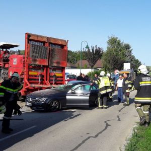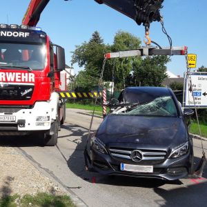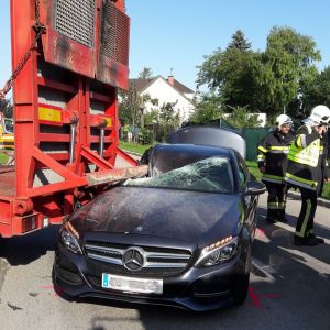 Im Ortsgebiet von Obermallebarn war aus uns unbekannter Ursache ein PKW in den Tieflader eines LKW's gekracht. Nach der Aufnahme durch die Polizei wurde das Fahrzeug mit dem WLFA-Kran abtransportiert und die Unfallstelle gemeinsam gereinigt.