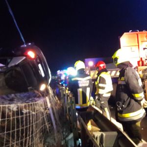 Glücklicherweise war keine Person im Fahrzeug eingeklemmt. Der Lenker wurde bei unserem Eintreffen bereits von der Rettung versorgt. Wir sicherten die Unfallstelle ab und begannen mit der Bergung des Fahrzeuges. Der Wagen wurde mit dem WLFA-Kran auf die Straße gehoben, verladen und abtransportiert. Ausgelaufene Betriebsmittel wurden von uns mit Ölbindemittel gebunden und die Fahrbahn gereinigt.
