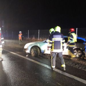 Aus unbekannter Ursache war ein Lenker mit seinem PKW in den Straßengraben gerutscht. Der Fahrer war zum Glück nicht wirklich im Fahrzeug eingeklemmt, konnte aber auf Grund der Lage des Fahrzeugs die Fahrertür nicht öffnen. Wir sicherten die Unfallstelle ab und nachdem der Lenker von der Rettung versorgt war, wurde der PKW mit dem RLFA-2000 auf die Straße gezogen. Danach konnte der Fahrer aus dem Auto befreit und der Rettung übergeben werden.