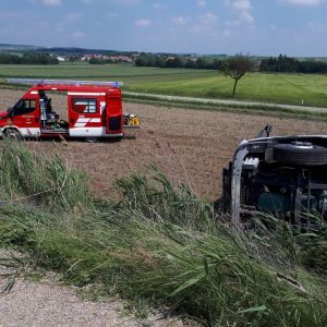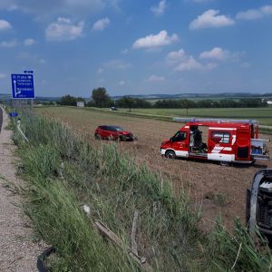 Auch ein weiters beschädigtes Fahrzeug wurde vor dem LKW im Acker vorgefunden. Die beteiligten Personen waren zum Glück nicht ernsthaft verletzt.