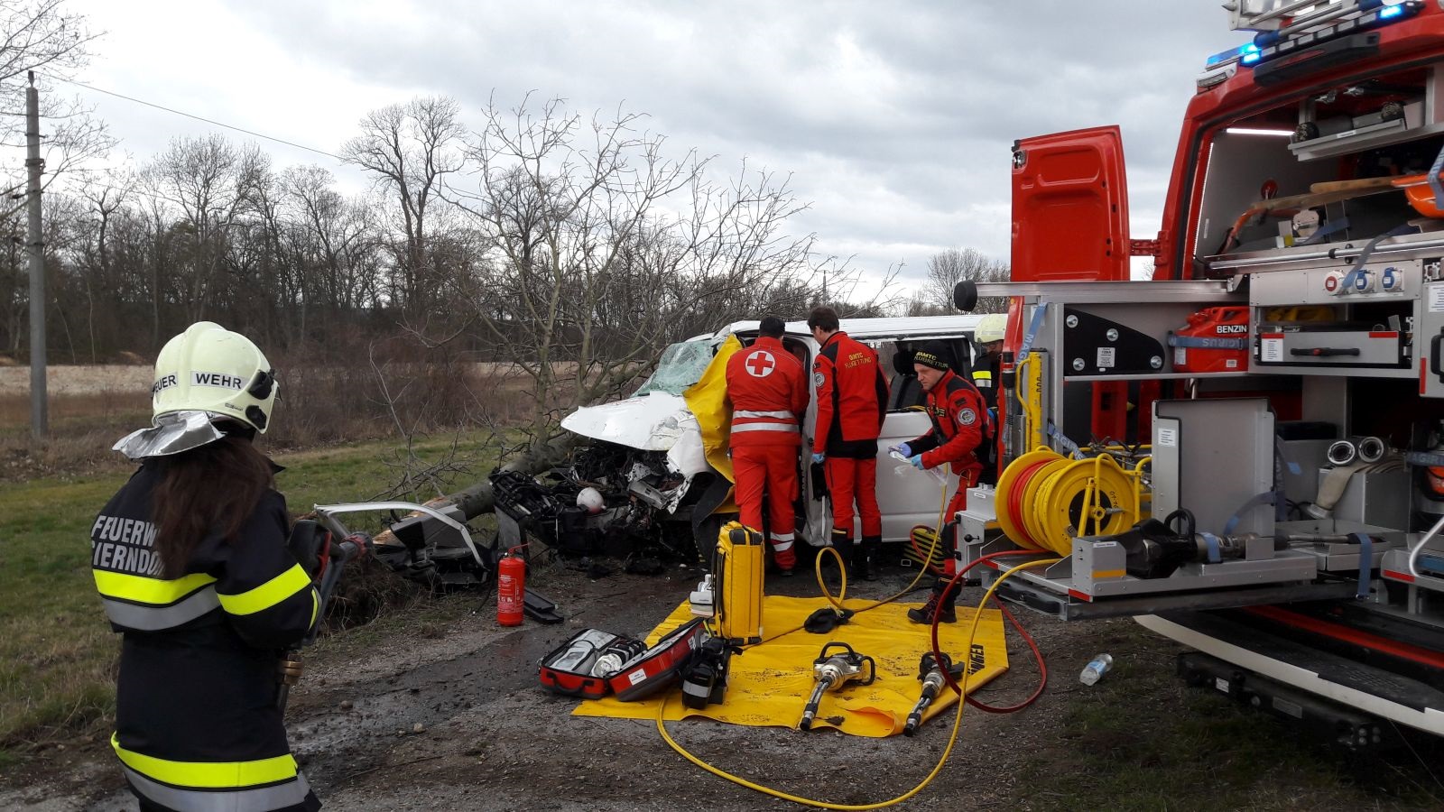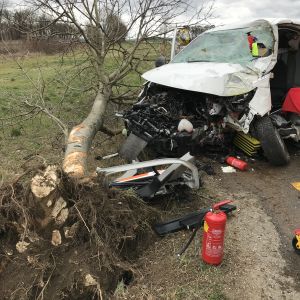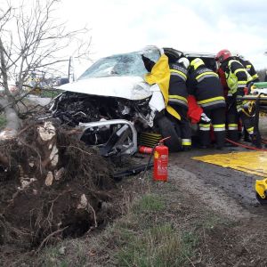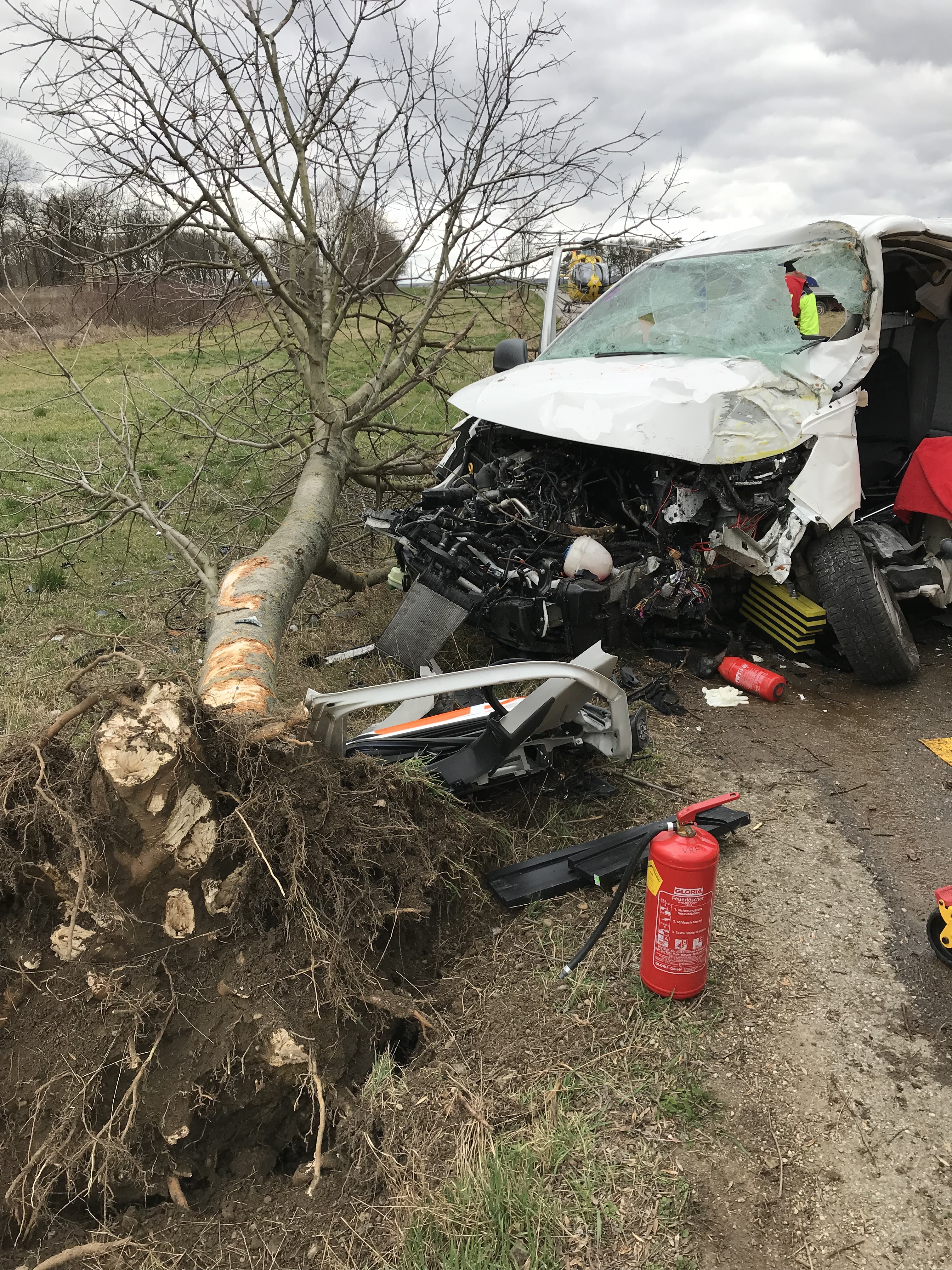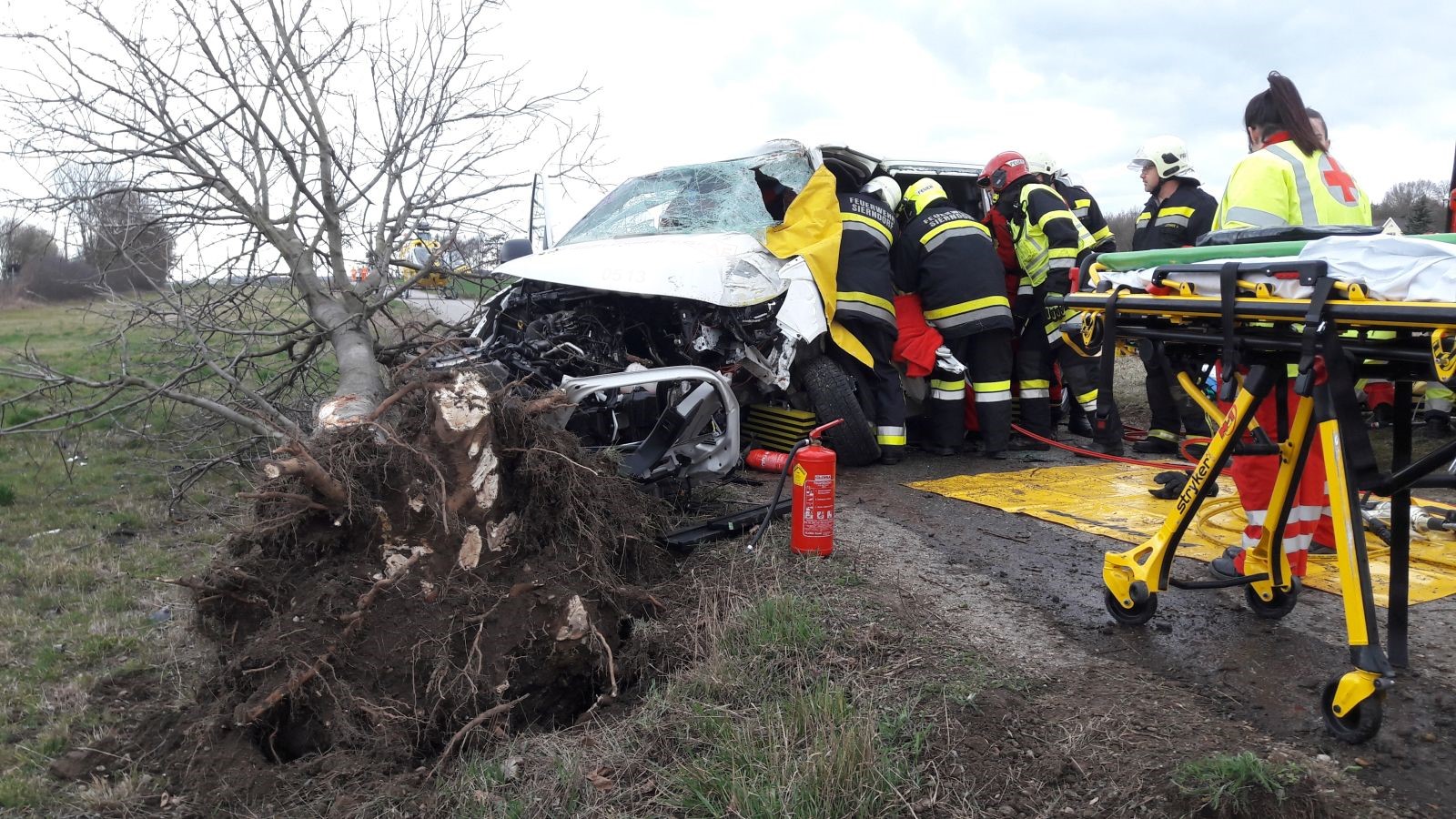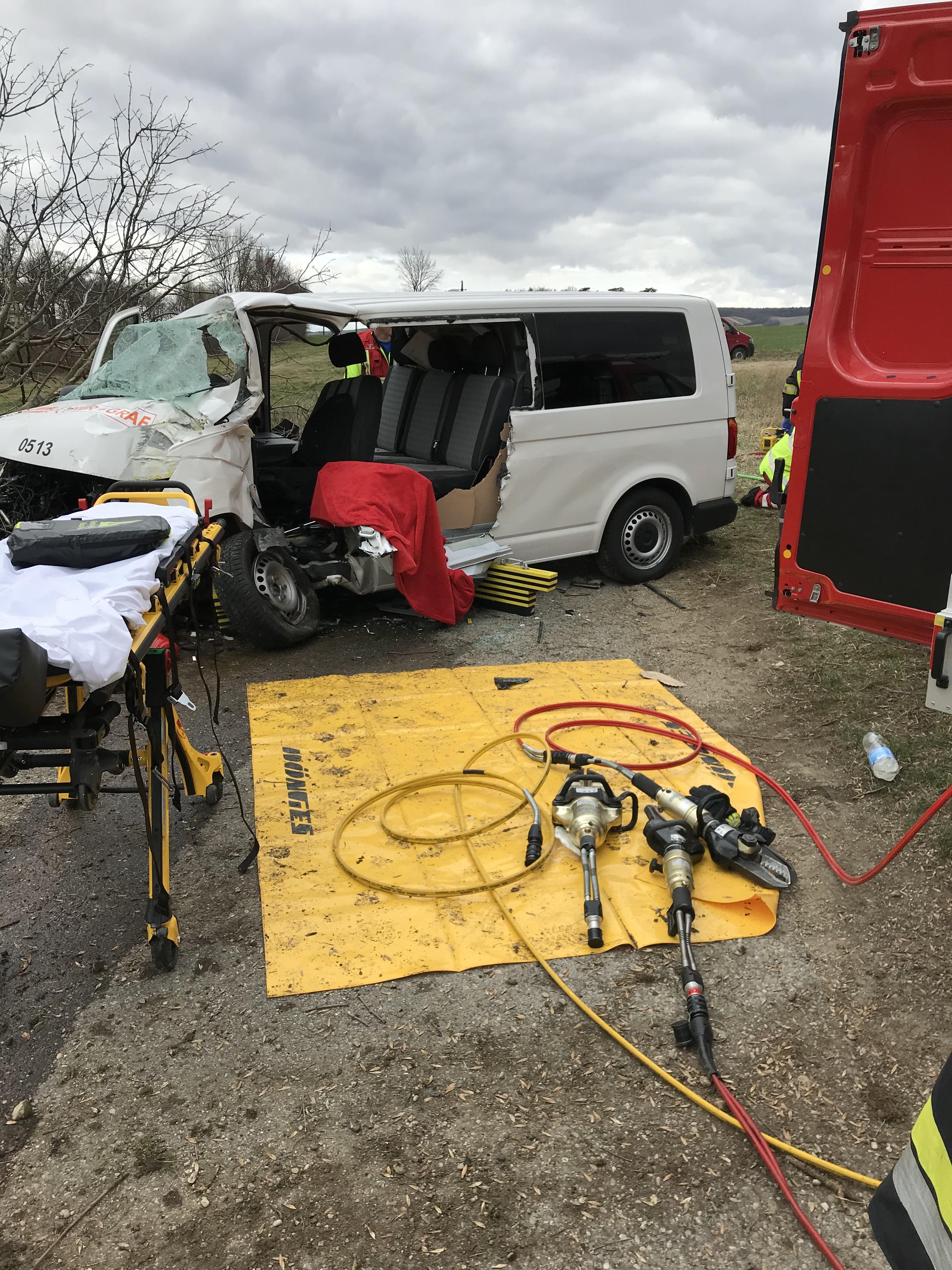 In der Nähe des Bahnüberganges bei Obermallebarn prallte ein Kastenwagen gegen einen Baum, der Fahrer wurde dabei im Fahrzeug eingeklemmt.