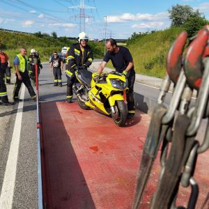 Am Montag Nachmittag wurde unsere Hilfe nach einem Motorradunfall angefordert. Auf der L1132 war ein Lenker mit seinem Motorrad aus ungeklärter Ursache von der Straße abgekommen und in den angrenzenden Graben gestürzt.