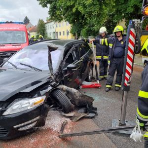 Aus unbekannter Ursache ist ein PKW gegen einen Baum geprallt und auf der Straße zum Stehen gekommen. Vor unserem Eintreffen wurde der eingeklemmte Fahrer bereits von der FF Großmugl über die Beifahrerseite gerettet. Die FF Roseldorf kümmerte sich um den Brandschutz.