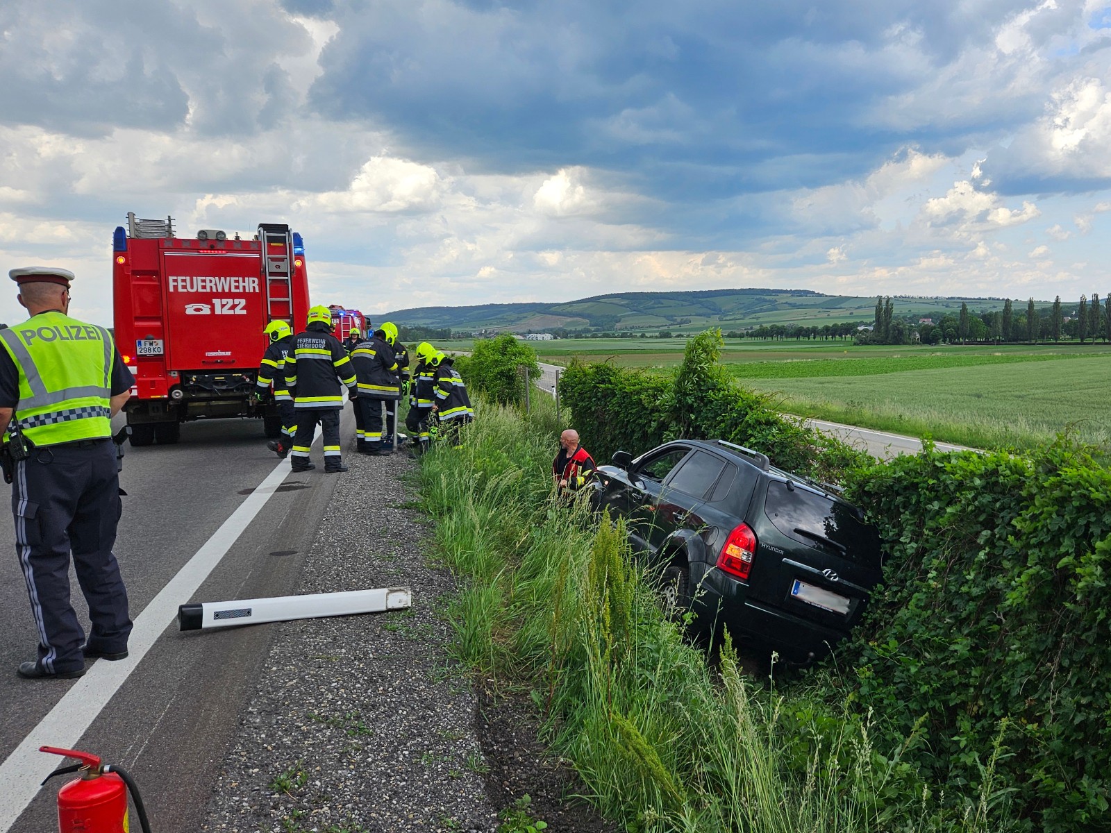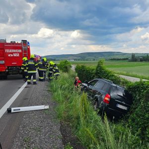 Ein PKW ist aus uns unbekannten Gründen von der Fahrbahn abgekommen und im Straßengraben gelandet. Nach Absicherung der Unfallstelle wurde das Fahrzeug mit dem RLFA-2000 wieder auf die Straße gezogen. Nach Überprüfung der Fahrbereitschaft konnte der Lenker seine Fahrt fortsetzen.
