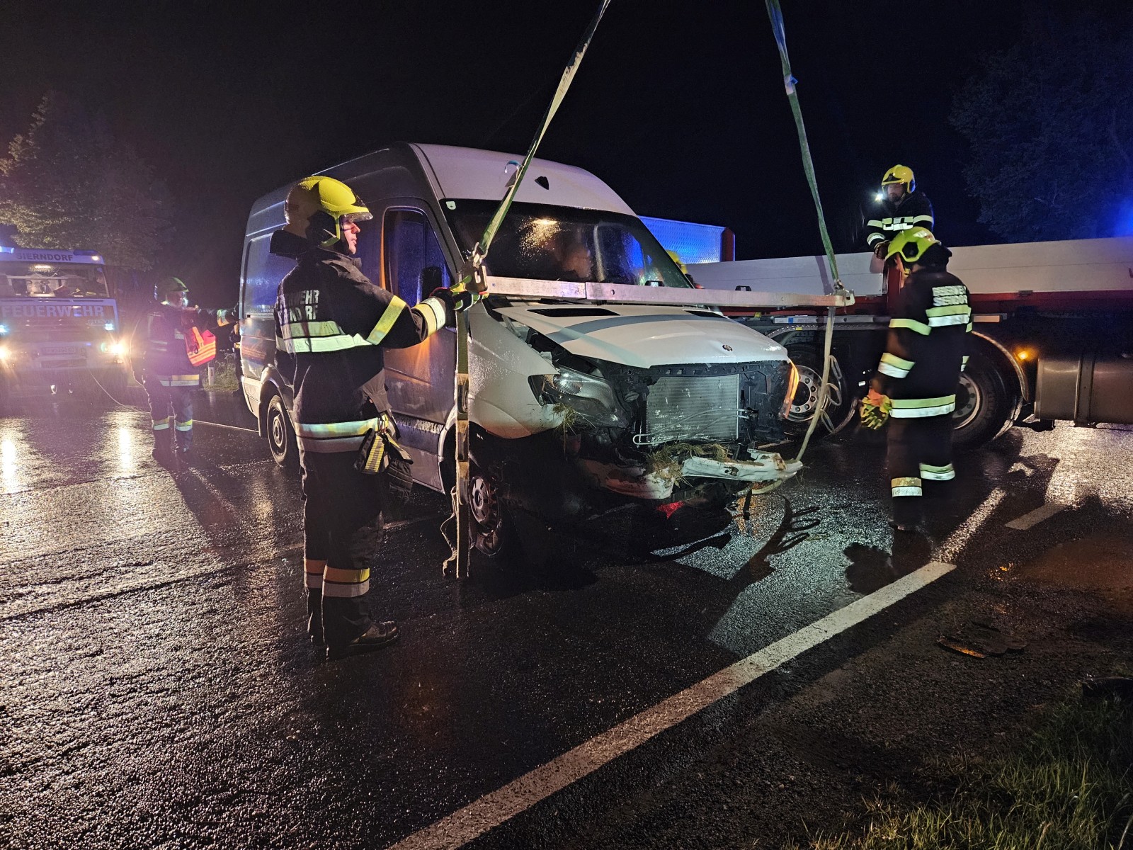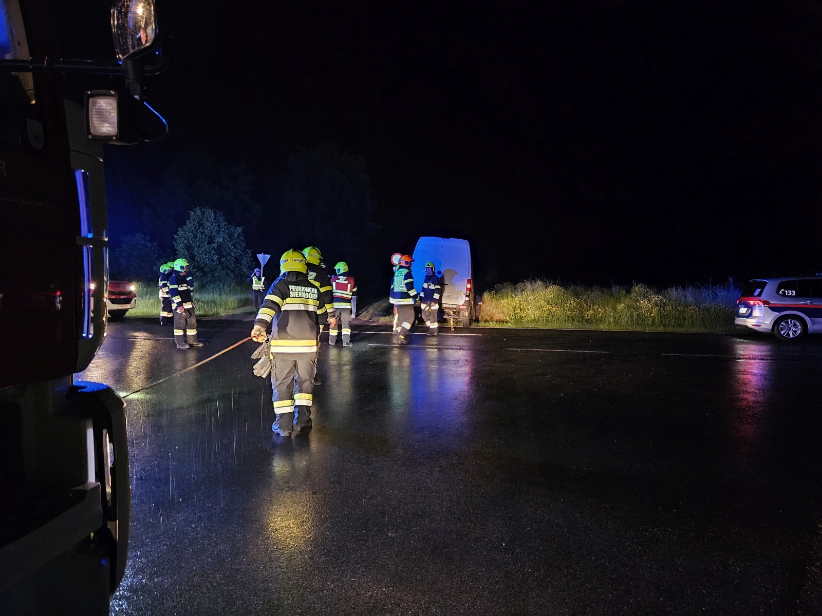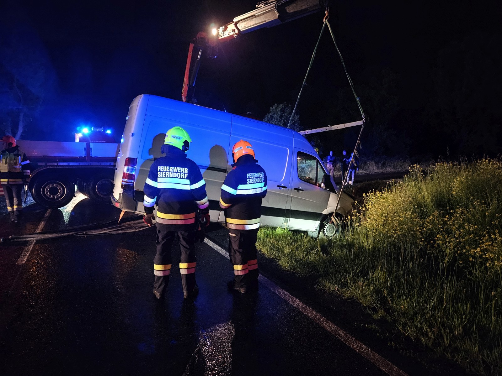 An der Kreuzung L30/L1131 war das Fahrzeug in den Straßengraben gefahren. Die Einsatzstelle wurde abgesichert und mittels Seilwinde des RLFA-2000 und Kran des WLF wurde der Kleintransporter wieder auf die Fahrbahn gezogen. Den Abtransport führte ein Abschleppunternehmen durch.