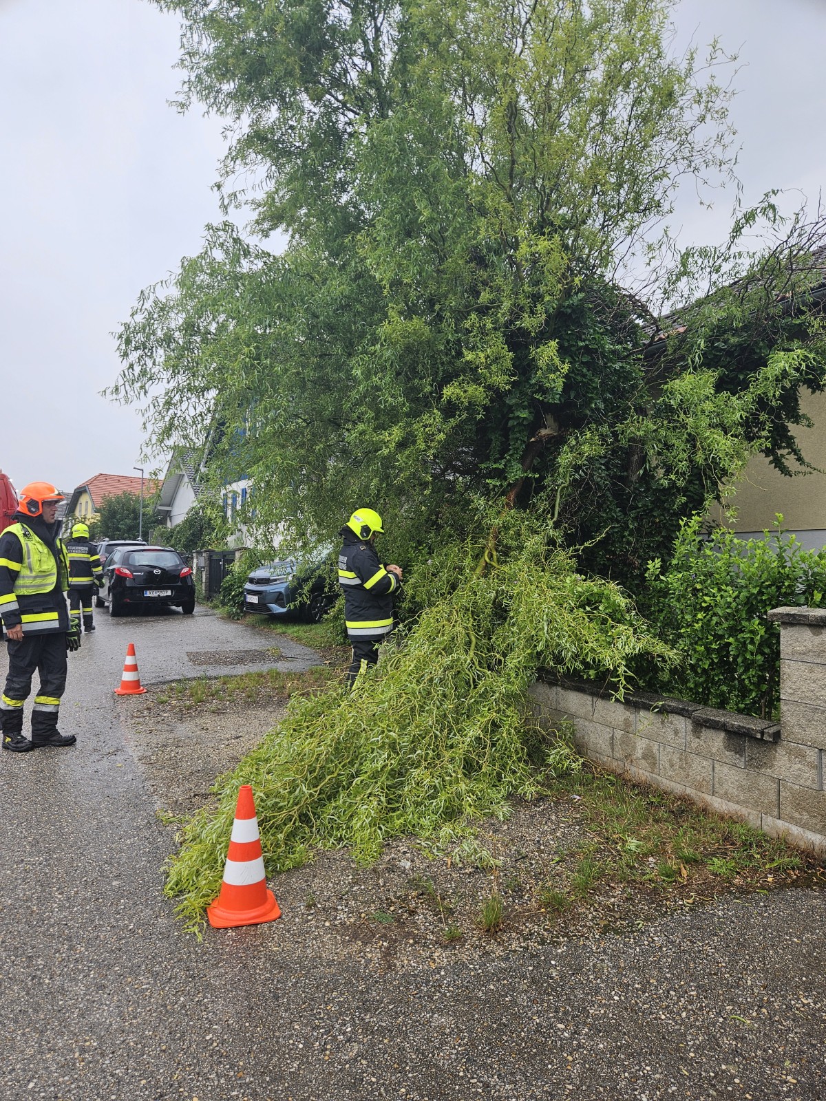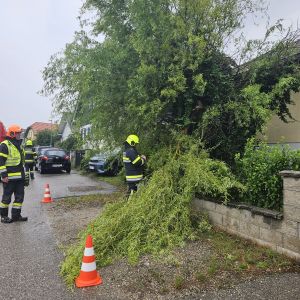 Nach einem Gewitter wurden wir alarmiert um einen herunterhängenden Ast im Ortsgebiet zu entfernen.