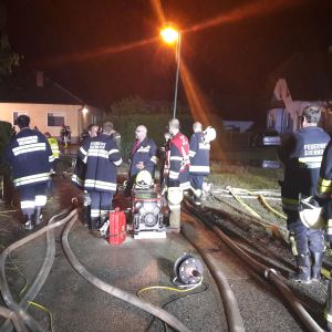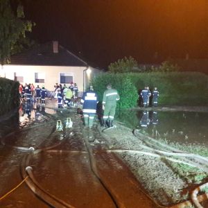 Von der Einsatzleitung bekamen wir den Auftrag mit der FF Hausleiten den Keller eines Einfamilienhauses leer zu pumpen, sowie das Waser auf einem überfluteten Straßenzug in den Bach zu pumpen.