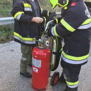 Als erstes Fahrzeug konnte das VRF ausrücken und fand einen PKW in der Pannenbucht auf Höhe Sierndorf vor bei welchem Flammen aus dem Motorraum schlugen und auch schon auf den Innenraum übergriffen. Sofort wurde auf der gegenüberliegenden Fahrbahn angehalten, der "Poly-Trolley" (50 l Löscher mit CAFS-Schaum) über die Betonleitwand gehievt und unter Atemschutz die Brandbekämpfung begonnen. Der Brand war rasch gelöscht, sodass die nachrückenden Kräfte (FF Stockerau und RLFA-2000 Sierndorf) lediglich Nachlöscharbeiten durchführen mussten.
