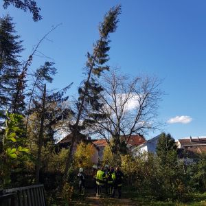 Durch den starken Sturm wurde auf einem Grundstück im Ortsgebiet ein Baum umgeknickt, desweiteren drohte ein Baum auf das Nachbargrundstück zu stürzen.