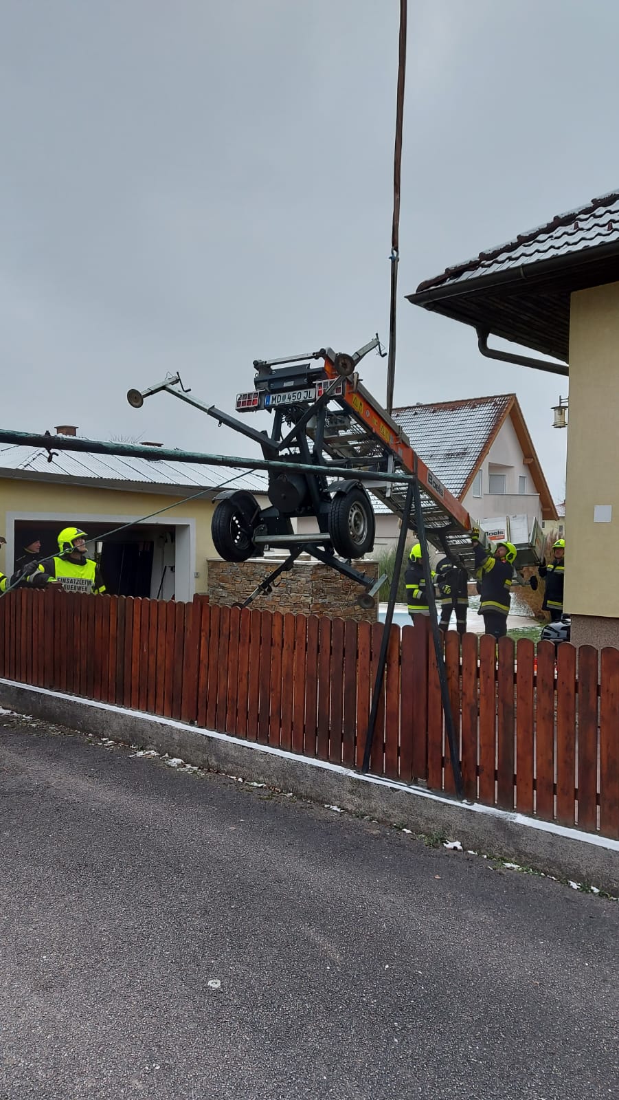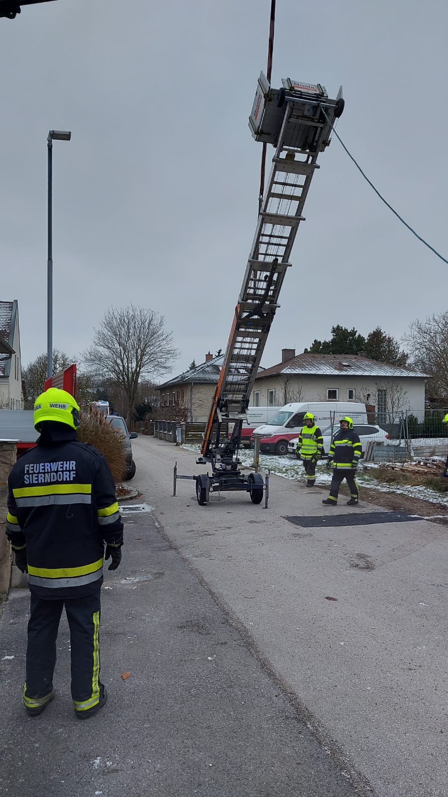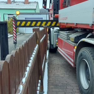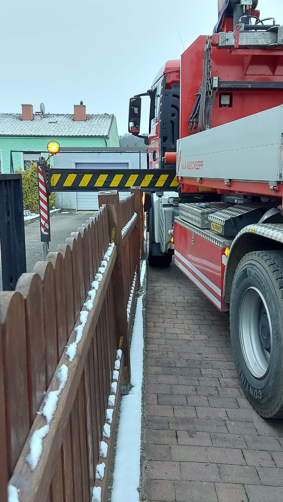 Für die Positionierung des WLFA-K in der engen Hauszufahrt musste ein Element des Gartenzaunes entfernt werden, danach konnte die Bergung des Gerätes mittels des Ladekrans erfolgen.