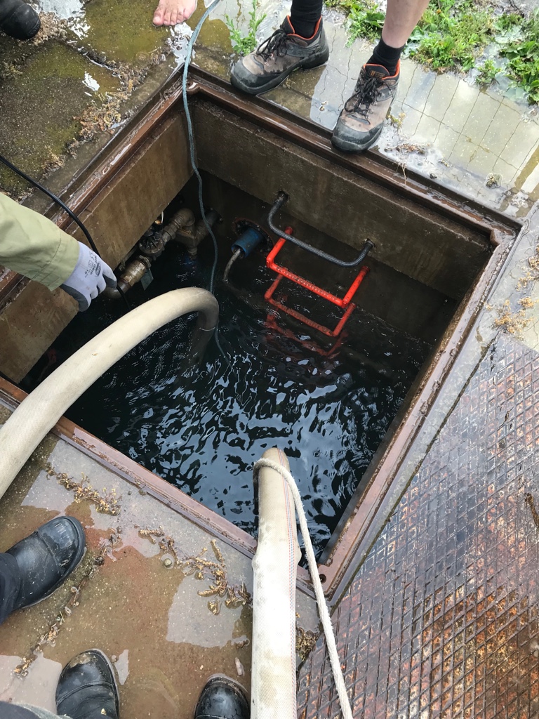 Aufgrund eines Rohrbruches in einem Schacht wurde dieser bis obenhin geflutet.