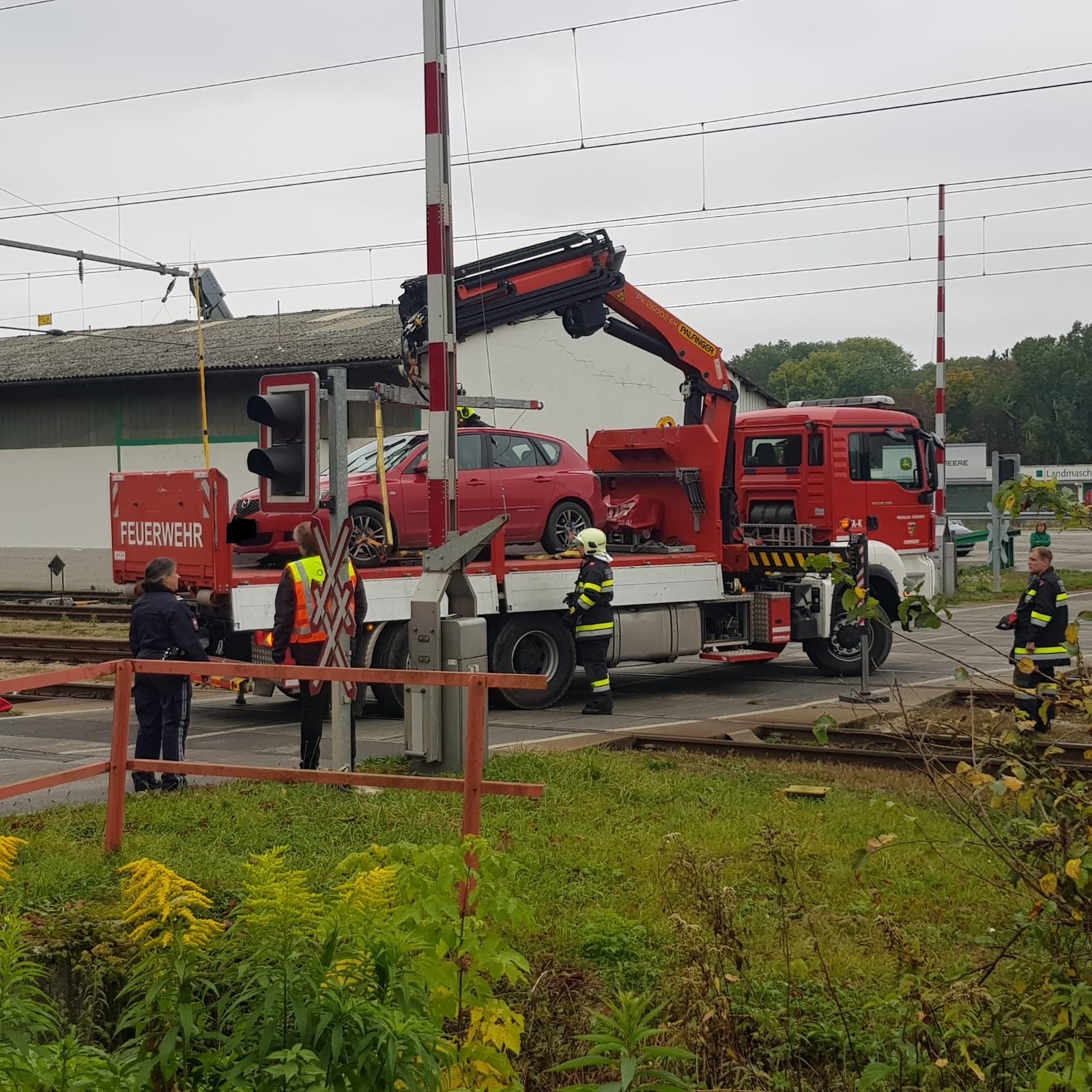 Im Anschluss konnte der PKW mittels Ladekran des WLFA-K von den Gleisen geborgen und abtransportiert werden.