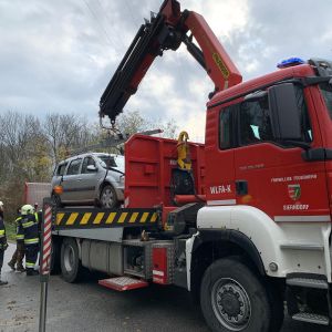 Gemeinsam mit der FF Oberhautzental wurden wir zur Bergung des Fahrzeuges alarmiert.