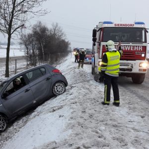 Mittels der Seilwinde des RLFA-2000 wurde das Fahrzeug wieder auf die Straße gezogen. Nachdem es keinerlei Beschädigungen gab, konnte die Fahrerin ihre Fahrt fortsetzen.