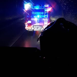 Da ein mitfahrender Hund nach dem Unfall aus dem PKW gesprungen ist, wurde der Bereich um die Einsatzstelle ausgeleuchtet und mit Hilfe der Wärmebildkamera abgesucht, doch leider ohne Erfolg.
