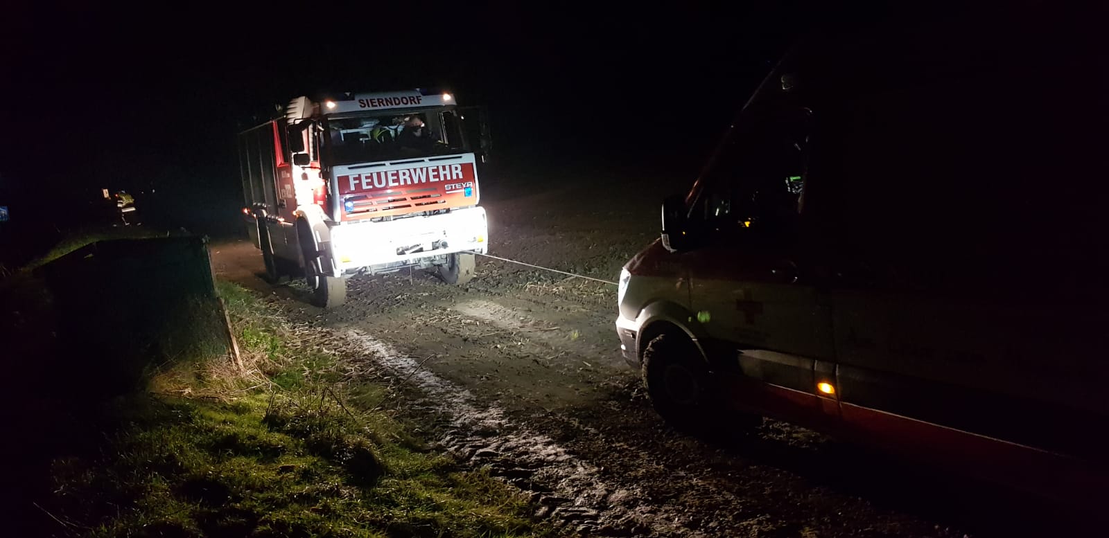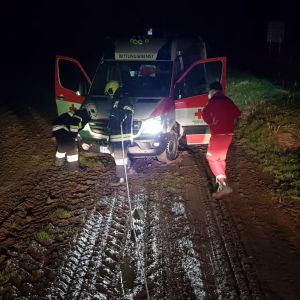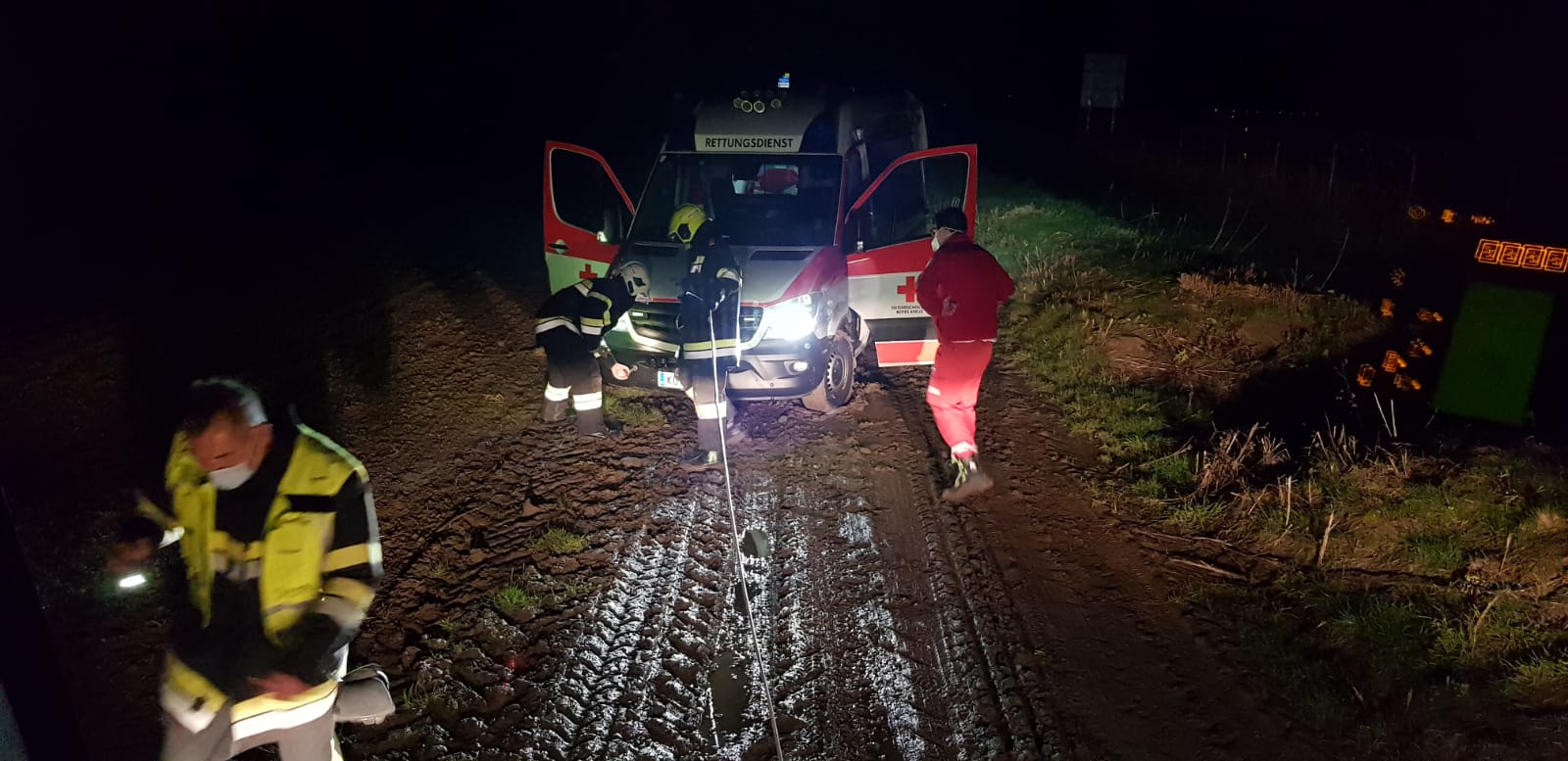 In der Nacht auf Samstag wurden wir zur Bergung eines im Matsch steckengebliebenen Fahrzeuges des Roten Kreuzes gerufen.