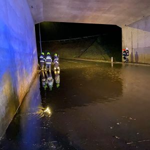 Aufgrund der starken Regenfälle und eines Ausfalls der Pumpanlage wurde in der Nacht auf Freitag die Unterführung der S3 bei der Anschlussstelle Sierndorf überflutet.