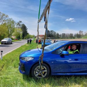 Mittels Bergetraverse wurde der PKW angehoben und wieder auf festen Untergrund gestellt.