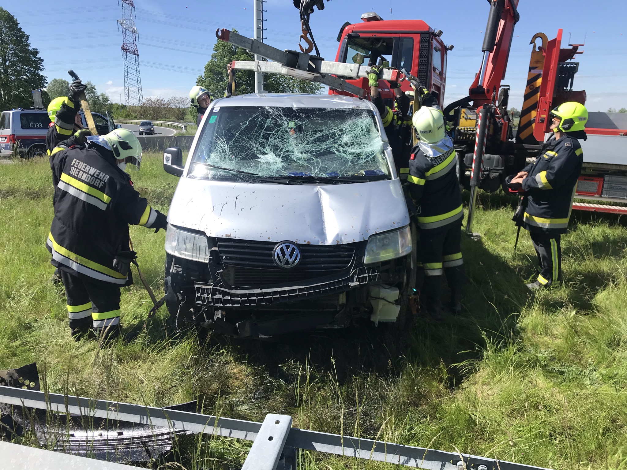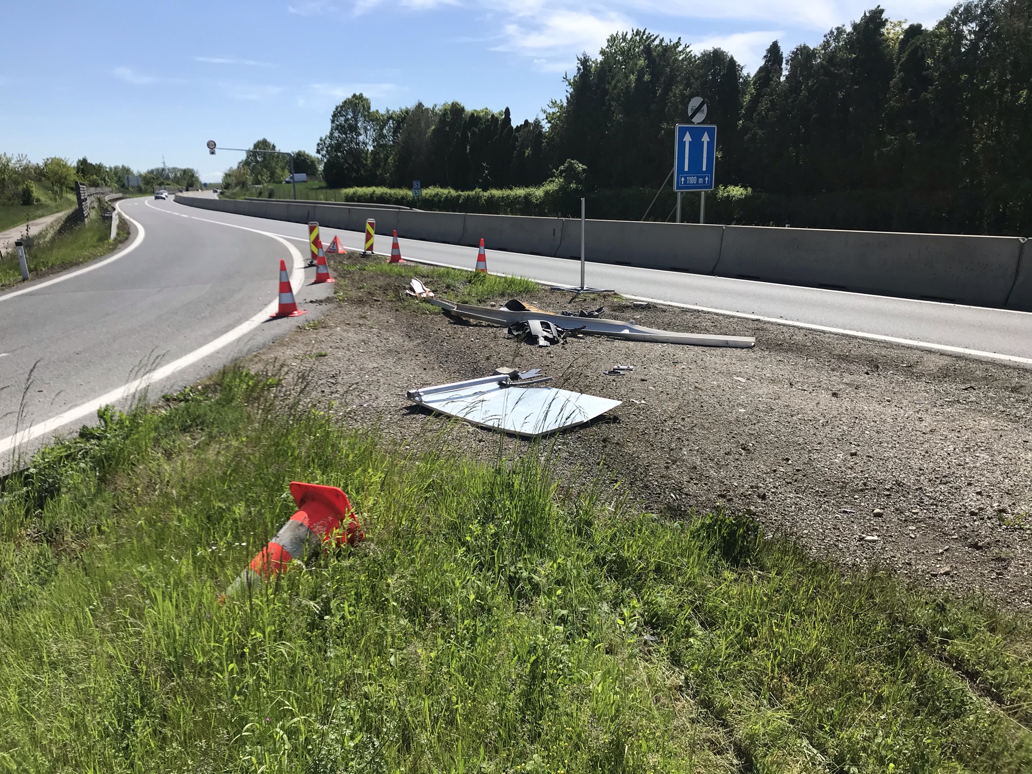 Aus unbekannter Ursache verpasste ein Kastenwagen die Abfahrtspur, rammte ein Verkehrsschild und kam im Grünstreifen zwischen Ab- und Auffahrt zu stehen. Die Verankerung des Verkehrszeichens bohrte sich dabei in die Ölwanne des Fahrzeuges, wodurch es zu einem Ölaustritt kam. Zum Glück blieb der Fahrer unverletzt.