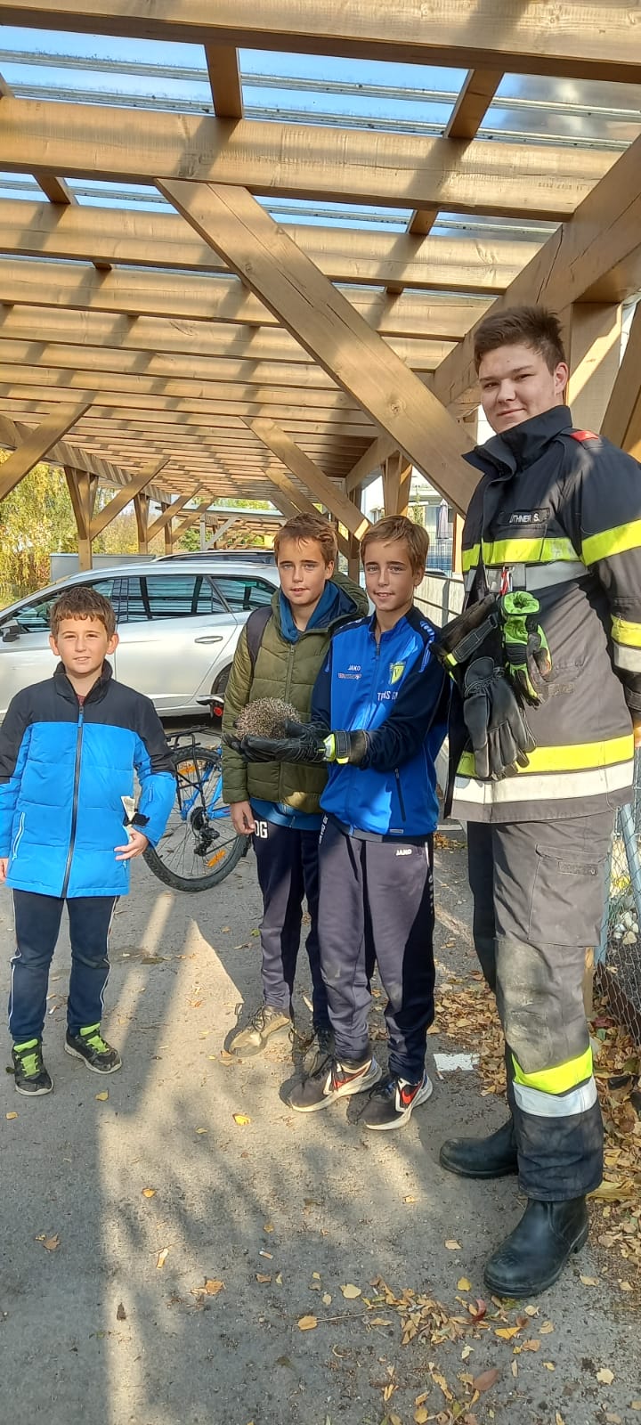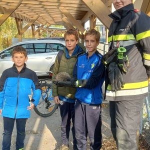 Kinder entdeckten einen in einem Maschendrahtzaun feststeckenden Igel und wählten den Feuerwehr-Notruf.