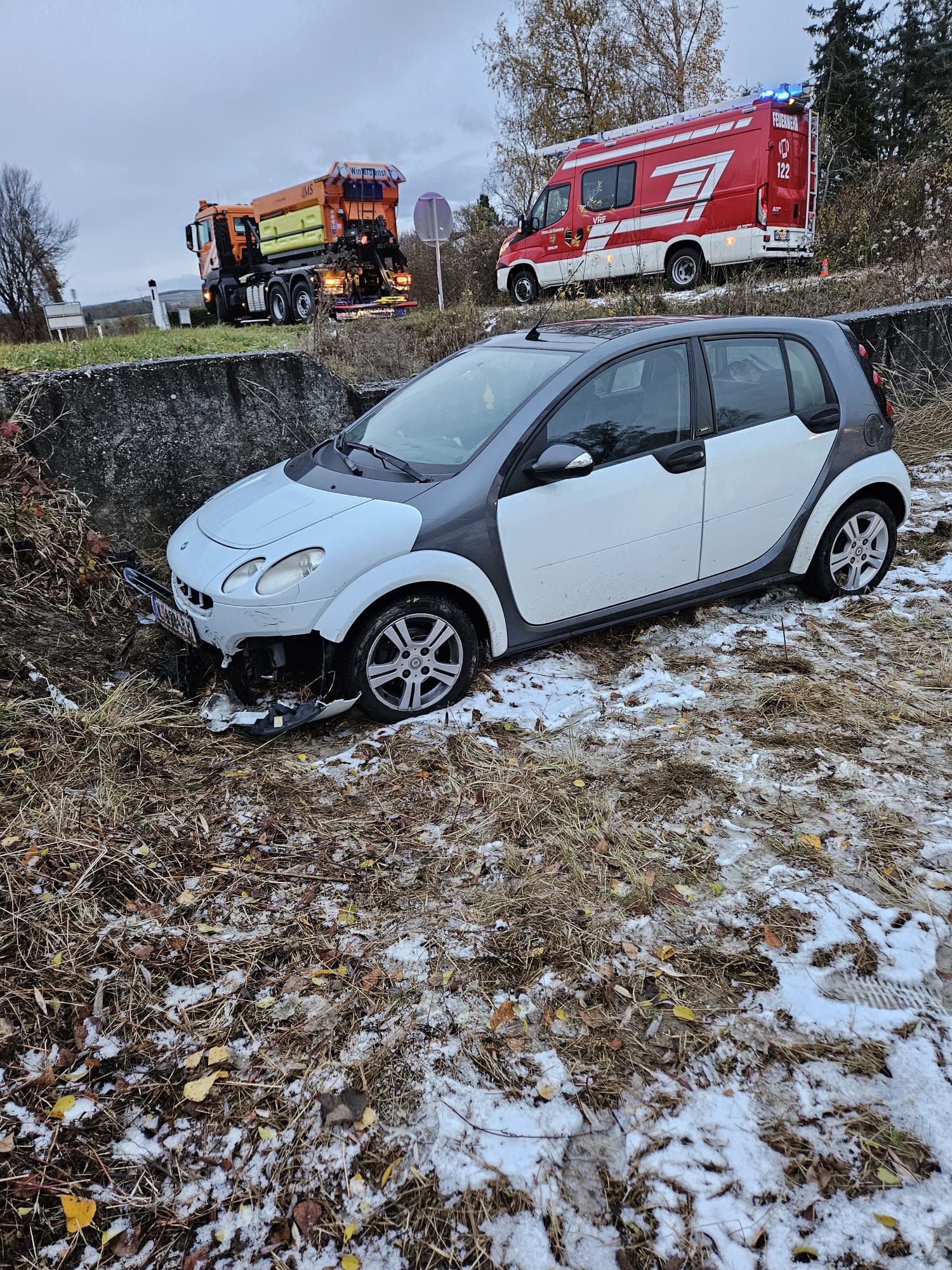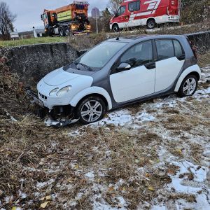 Auf der RiFb Guntersdorf in der Abfahrt Obermallebarn kam ein PKW von der Fahrbahn ab und landete im Straßengraben.