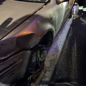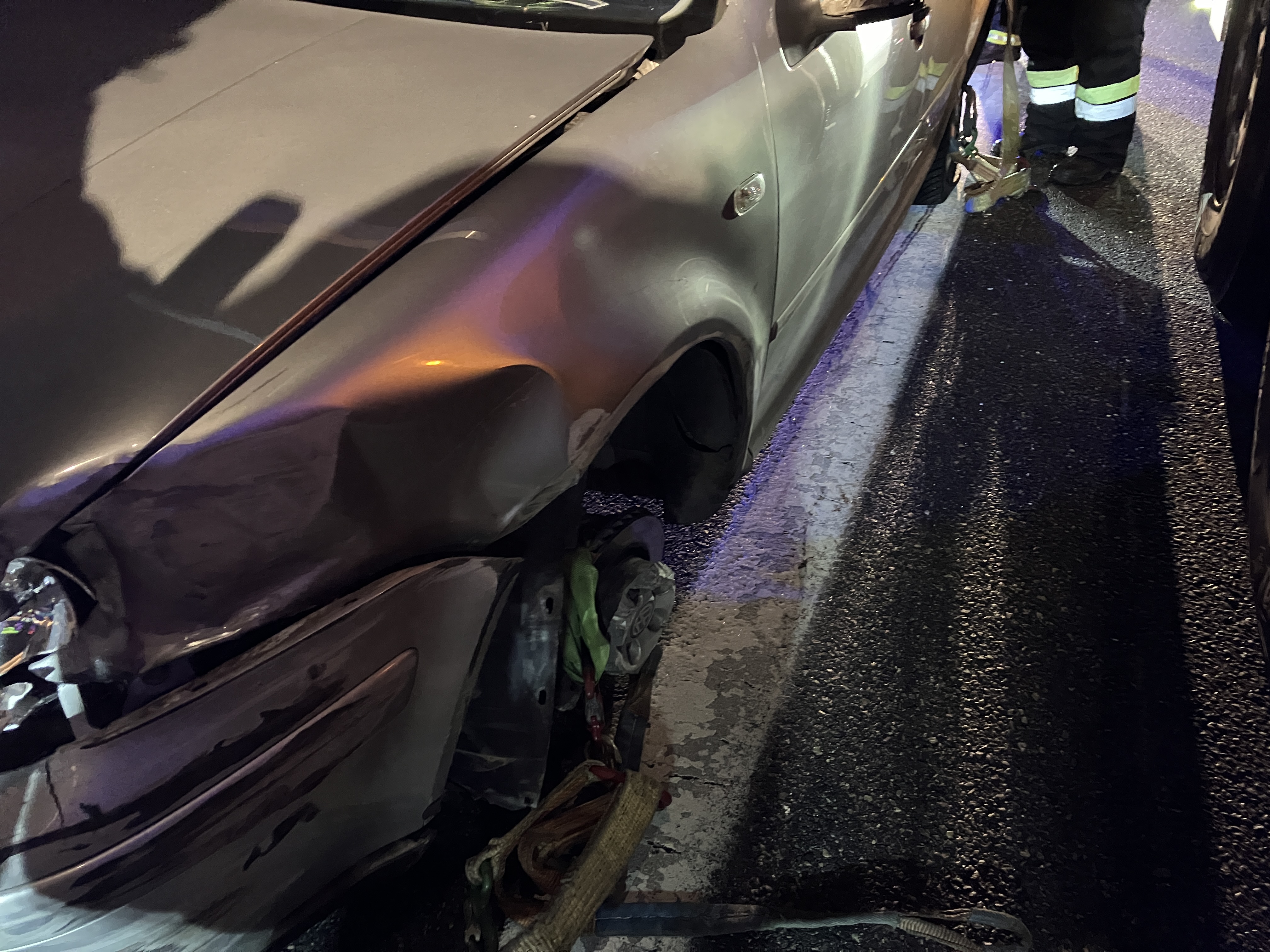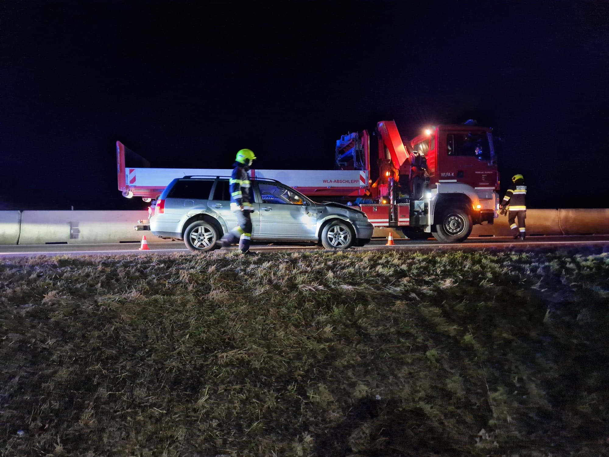 Aus unbekannter Ursache hat ein PKW die Betonleitwand und die Leitschiene touchiert, wobei das linke Vorderrad ausgerissen wurde.