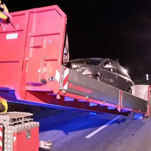 Das verunfallte Fahrzeug wurde mittels Seilwinde wieder auf die Straße gezogen und mit dem WLF-Kran abtransportiert.