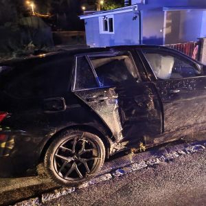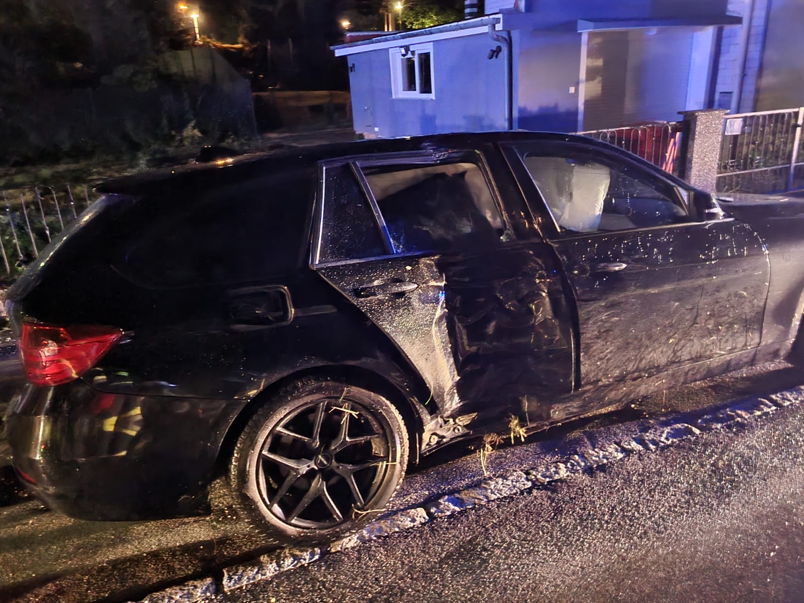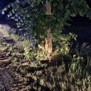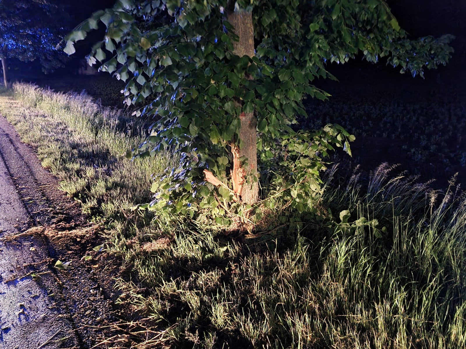 Ein PKW war aus unbekannter Ursache seitlich gegen einen Baum gekracht, die Fahrzeuginsassen konnten das Fahrzeug unverletzt verlassen.