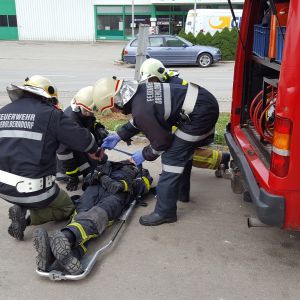 Insgesamt waren 4 Personen im Gebäude vermisst, welche relativ rasch gefunden und auch ins Freie gebracht werden konnten. Neben den vermissten Personen musste auch noch ein Atemschutzträger von seinen Kameraden nach einem Schwächeanfall gerettet werden. Auch diese Aufgabe wurde rasch erledigt. Im freien warteten bereits Kameraden der Feuerwehren aus Sierndorf und Oberolberndorf um die geretteten Personen von den Atemschutztrupps zu über nehmen und zur Rettung zu bringen.