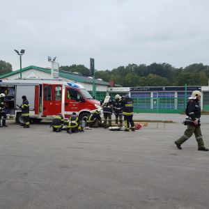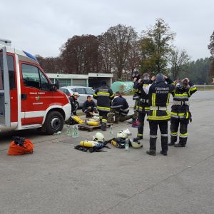 Nach Übungsende wurde die Übungsnachbesprechung durchgeführt, bei der alle eingesetzten Atemschutz-