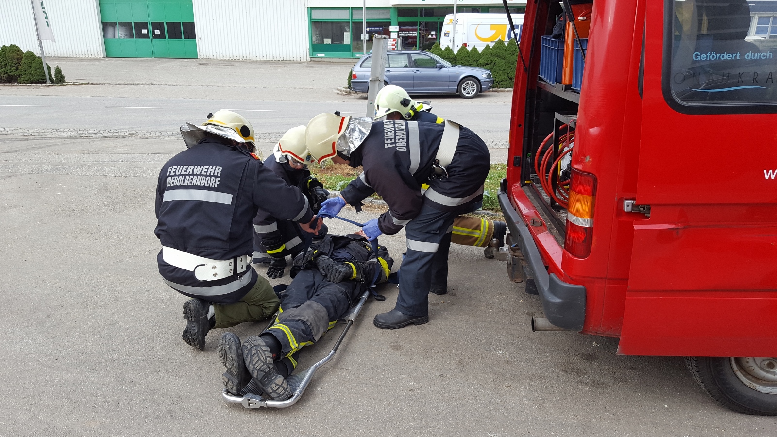Die Feuerwehren wurden nach und nach über Funk zum Übungsort alarmiert. Die FF Sierndorf erreichte als erstes dein Einsatzort und begann sofort mit einem Atemschutztrupp die Suche nach den vermissten Personen. Weiters wurde im KDO Sierndorf die Einsatzleitung aufgebaut. Als nächste traf die Die FF Oberolberndorf am Einsatzort ein. Der Gruppenkommandant meldete sich bei der Einsatzleitung und bekam sofort einige Aufträge. Zunächst unterstütze ein Kamerad der FF Oberolberndorf einen Atemschutztrupp der FF Sierndorf, des Weiteren rüsteten sich 3 weitere Mitglieder mit Atemschutzgeräten aus und begaben sich zum Einsatzleiter beim Eingang des Brandobjekt.