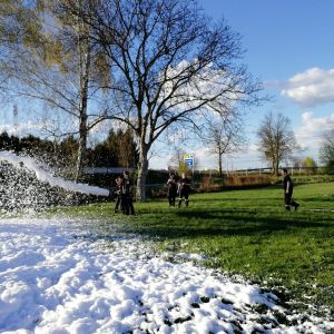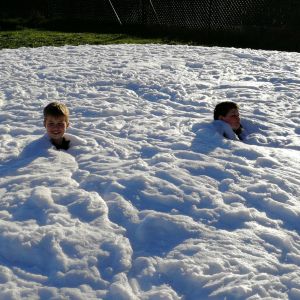 Die Kinder konnten hierbei im und mit dem Schaum spielen und konnten selbst am Mittelschaumrohr stehen, bzw. mussten sie auch selbst den Verteiler und den Schaumbehälter besetzen.