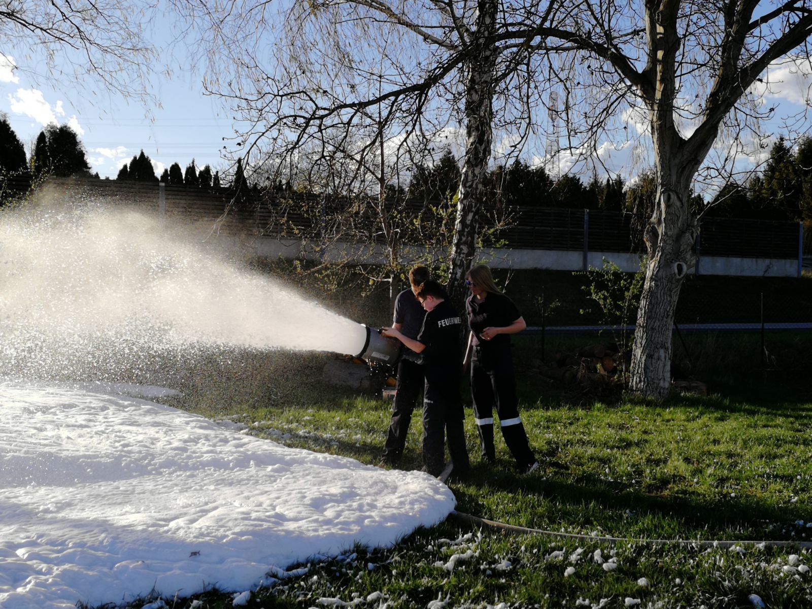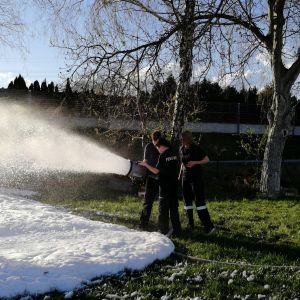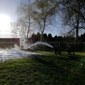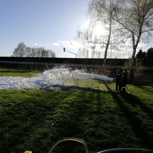 Es wurde dann nach einiger Zeit und ein paar Mannschaftswechseln vom Mittelschaumrohr aufs Schwerschaumrohr gewechselt. Dadurch konnten die Jugendmitglieder den Unterschied zwischen Mittel- und Schwerschaum erkennen.